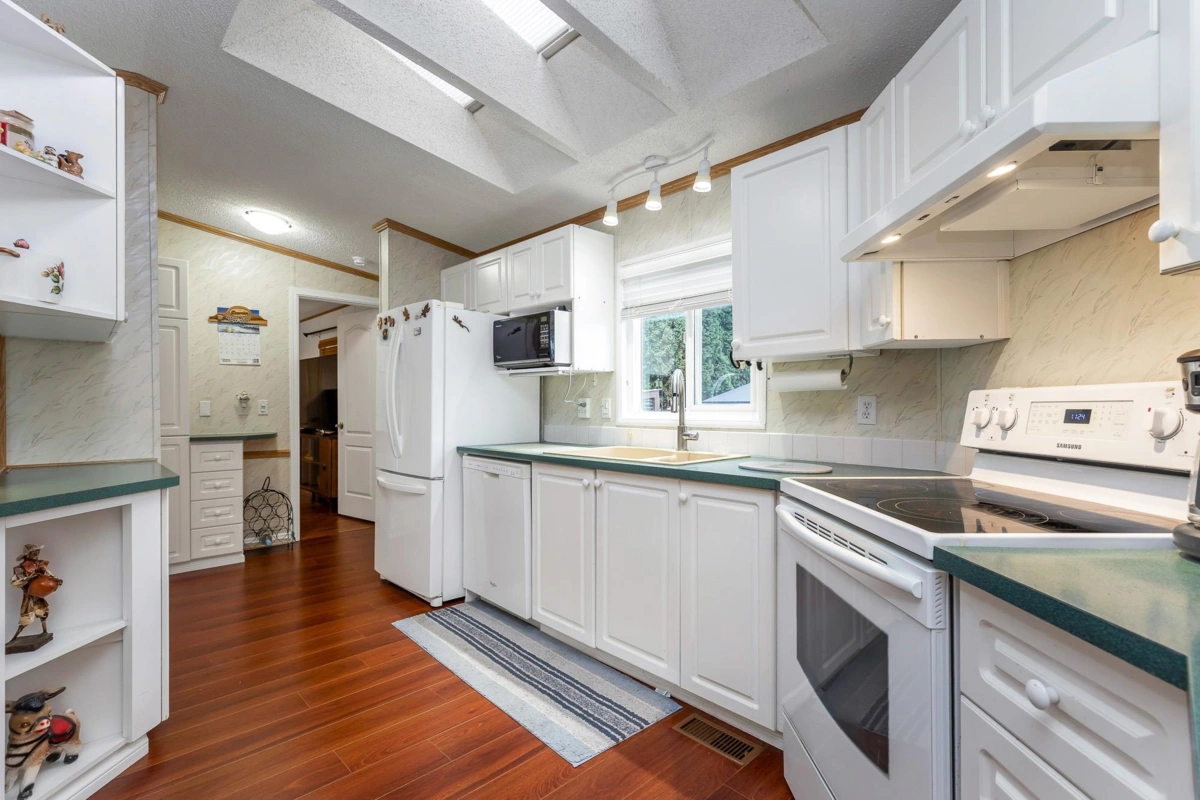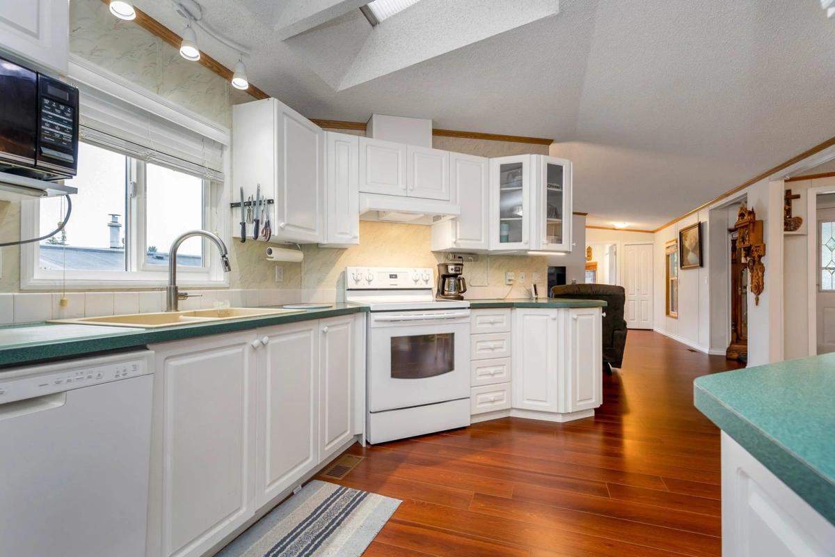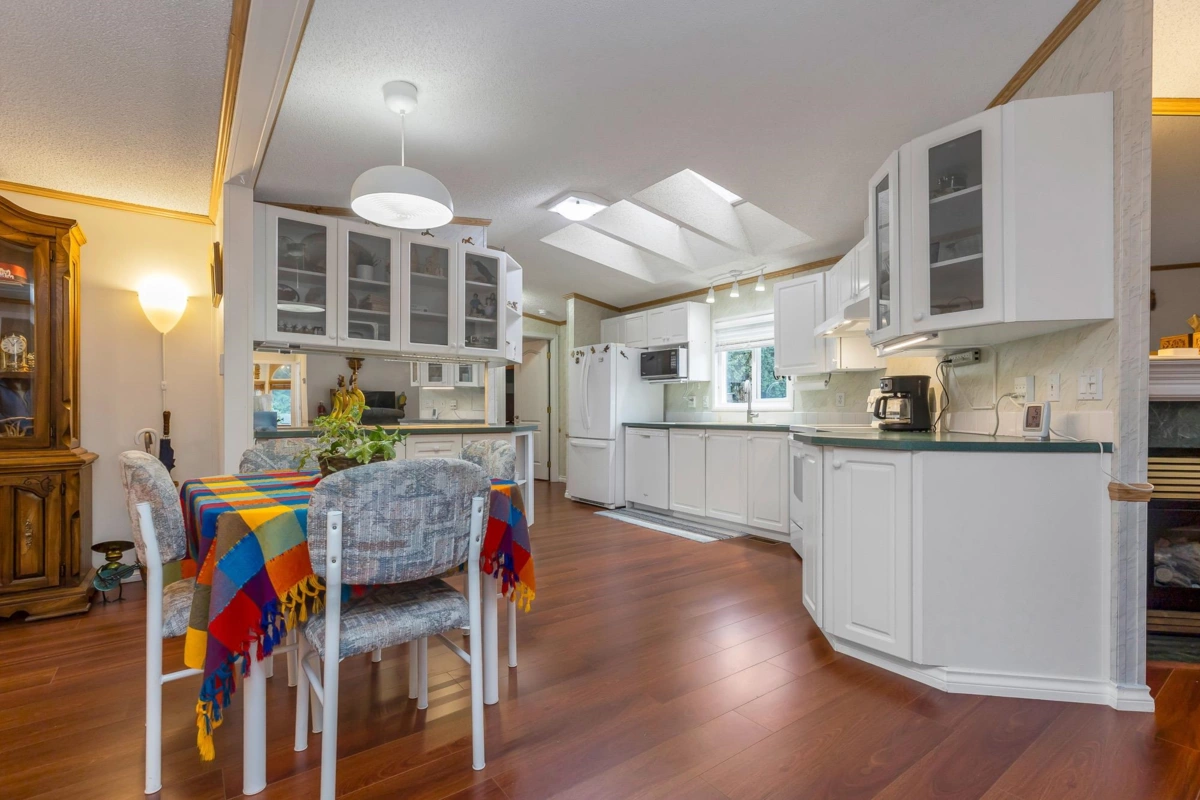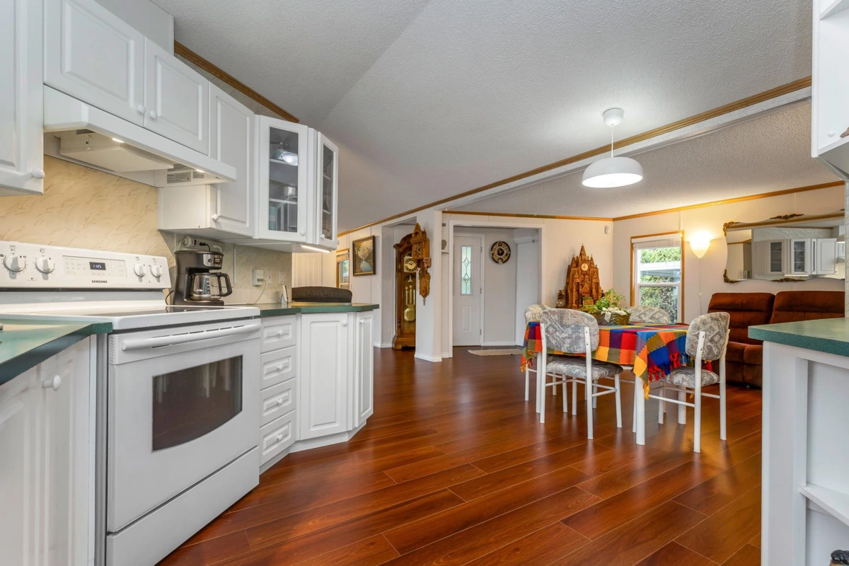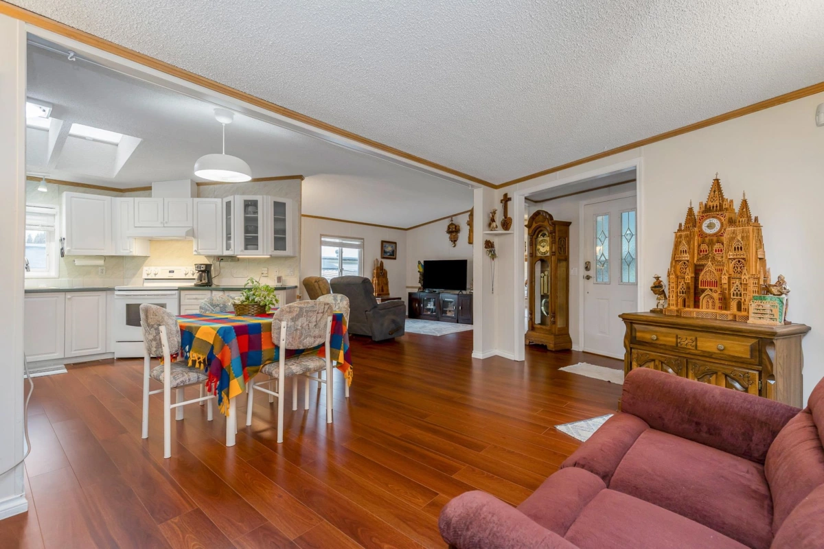 Fantastic home with all the necessities on one level! This spacious home offers over 1,200 sq ft of thoughtfully designed living space with 2 bedrooms and 2 bathrooms. Enjoy the convenience of two covered decks, a relaxing hot tub, air conditioning, and a new hot water tank. The home features a full-size washer and dryer, great kitchen for the cook in the family, built-in storage, and three additional storage sheds outside. Open-concept living area that’s perfect for everyday living and entertaining. The yard is amazing and the location in the park is like no other. You'll have to come and have a look for yourself. All of this makes this the perfect place to call home! Agult oriented 55+ plus age restriction.