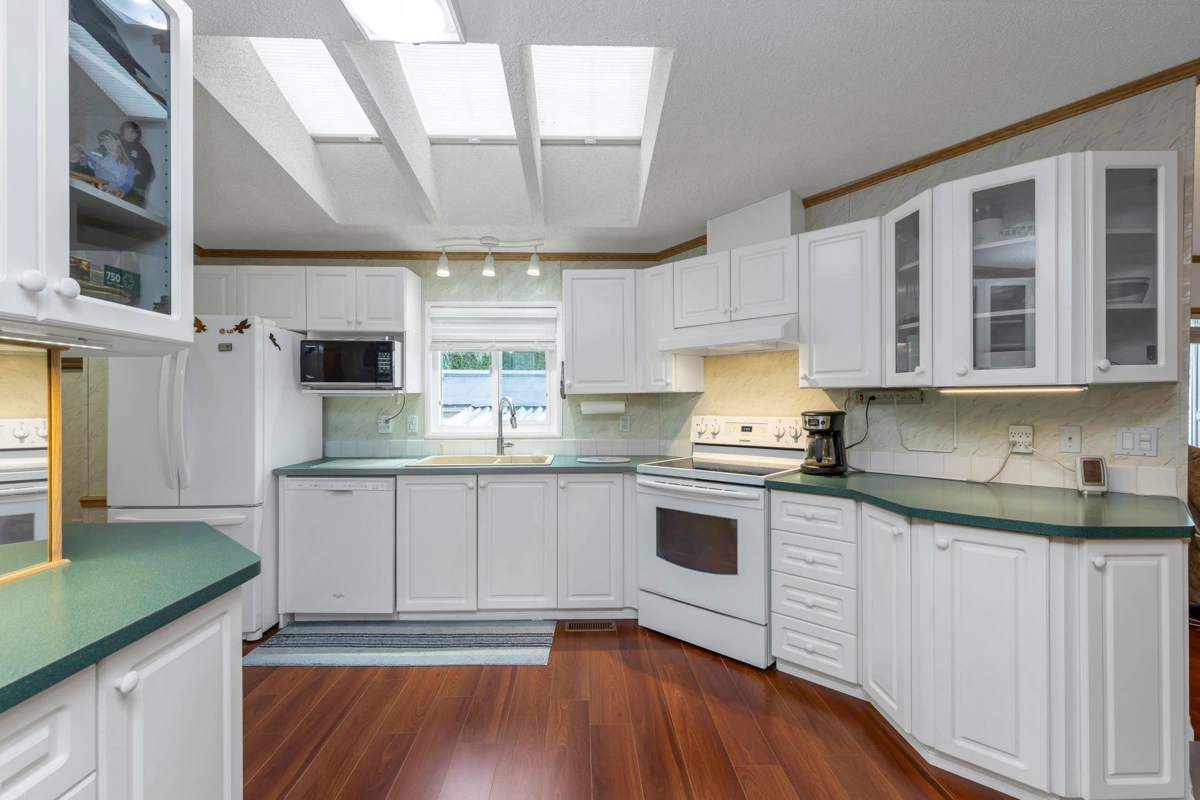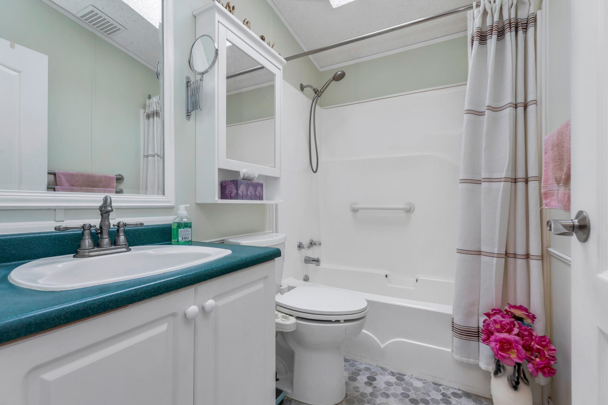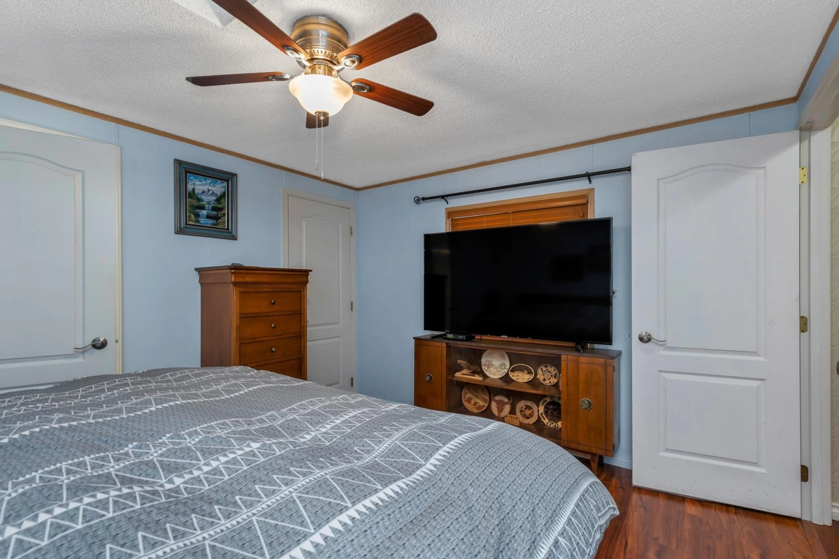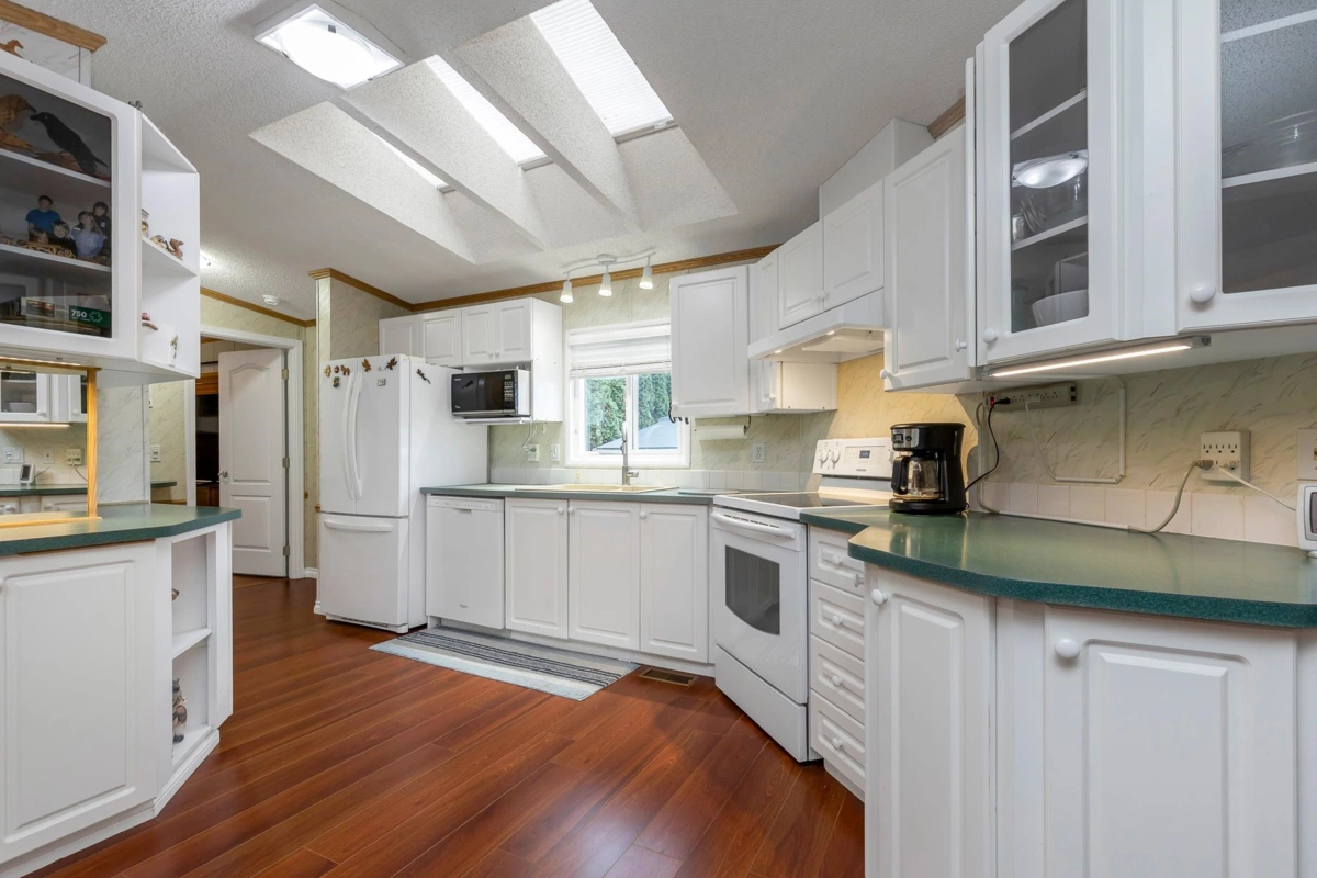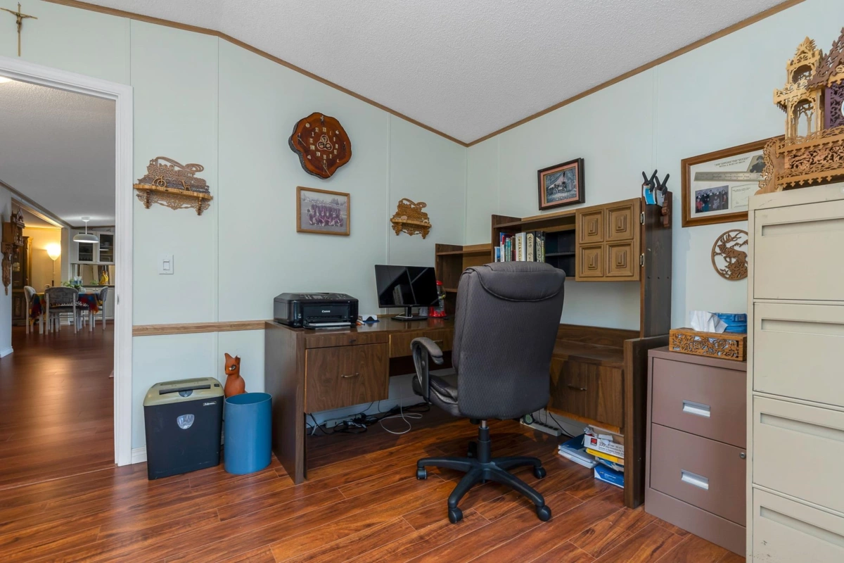 Fantastic home with all the necessities on one level! This spacious home offers over 1,200 sq ft of thoughtfully designed living space with 2 bedrooms and 2 bathrooms. Enjoy the convenience of two covered decks, a relaxing hot tub, air conditioning, and a new hot water tank. The home features a full-size washer and dryer, great kitchen for the cook in the family, built-in storage, and three additional storage sheds outside. Open-concept living area that’s perfect for everyday living and entertaining. The yard is amazing and the location in the park is like no other. You'll have to come and have a look for yourself. All of this makes this the perfect place to call home! Agult oriented 55+ plus age restriction.