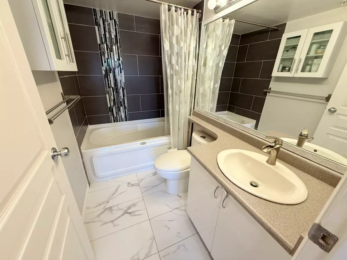 CONCRETE BUILD! Central Burquitlam located between New West, Burnaby, and Coquitlam. 4 min to Hwy 1, 9-min walk to Lougheed Station. Close to top schools: Lord Baden-Powell Elementary (3 min), Como Lake Middle, and Centennial Secondary (6 min). Daycare across the street and Vancouver Golf Club 3 minutes away. Spacious, well-maintained, newly renovated CORNER 2 bdr + huge flex home with a functional layout, two separate balconies, and North, South & West exposures for abundant of natural light. Private and airy bedrooms. Side-by-side two parking stalls. Well-managed strata with a healthy contingency funds for your peace of mind. Shops, restaurants, groceries, Lougheed Mall, and transit all within 5 minutes. Convenience, comfort, and lifestyle-perfectly combined. Come see it for yourself.