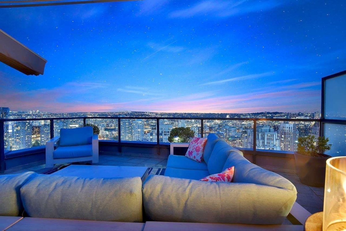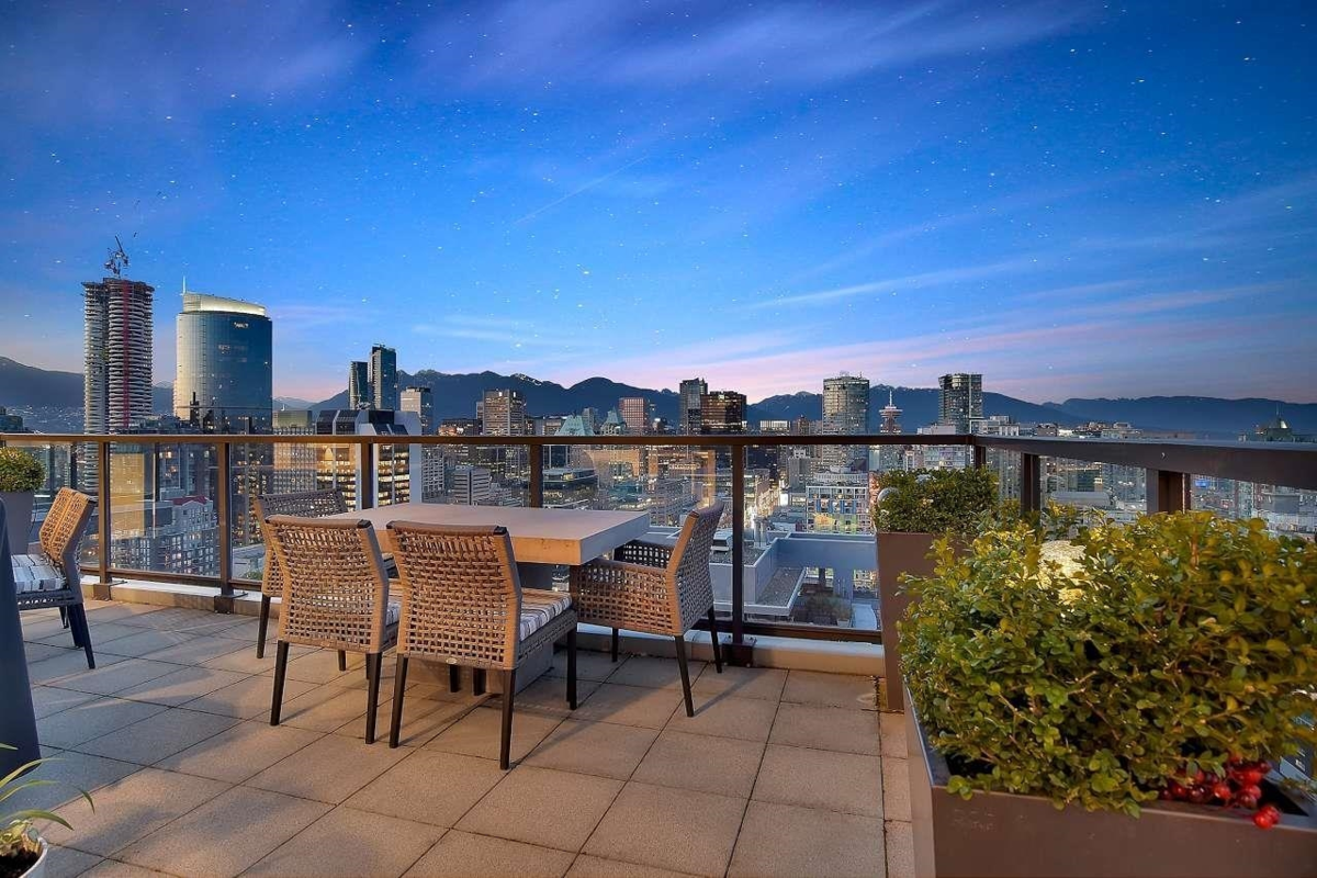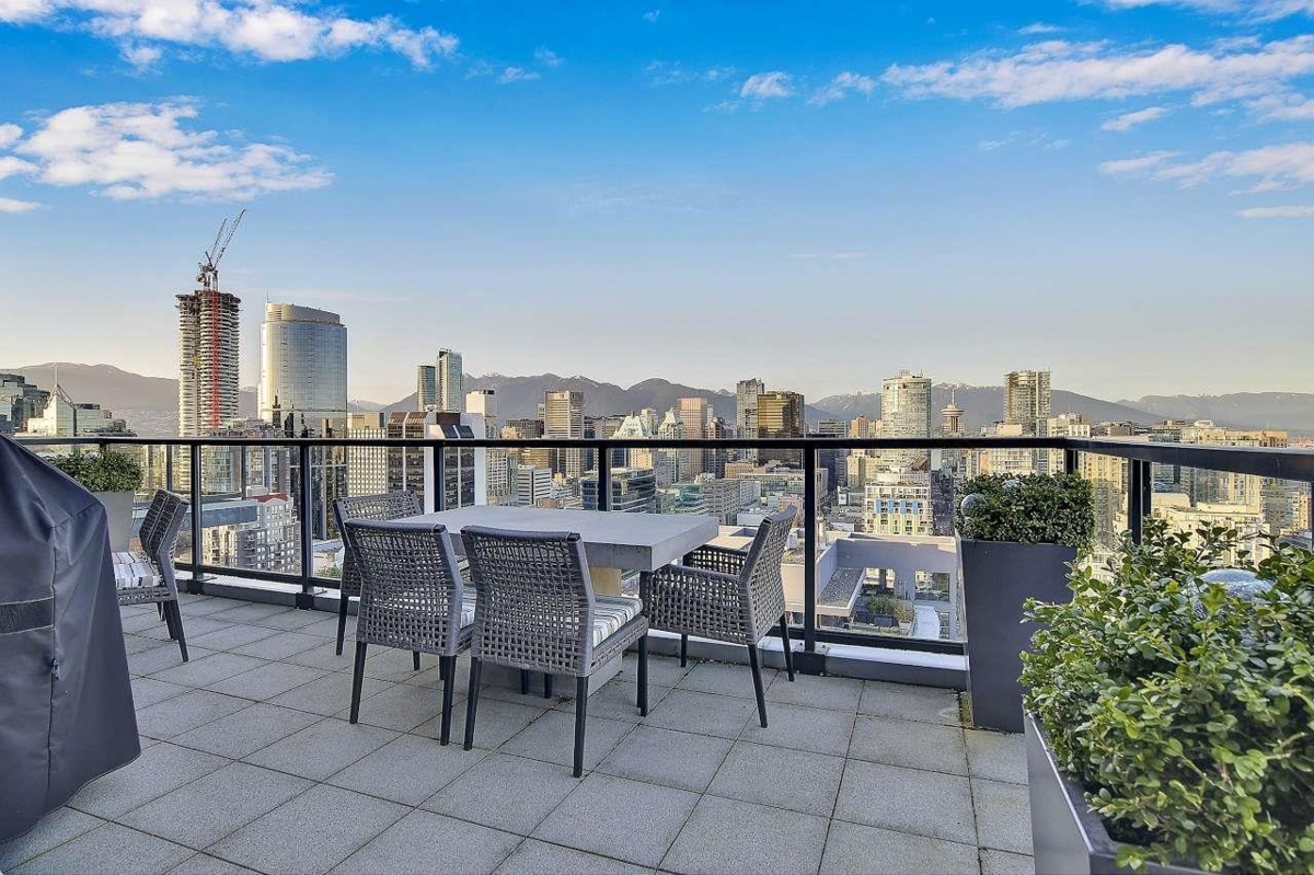 Elegant & Sophisticated Penthouse in the heart of Yaletown! Nearly 1900sf of magnificent indoor & outdoor living w/stunning panoramic mountain & water views. Professionally designed w/over $250k spent on renos that incl a chef’s kitchen; Subzero, Miele, Bosch, high gloss cabinetry, ceasar stone waterfall island & backsplash, wide plank flooring, motorized blinds, Control 4 surround, European doors by Sapeli, smart lighting, built-ins, wine wall, list goes on. O/H ceilings w/floor-ceil windows, large Den w/a murphy bed/desk that is ideal for guests. Imagine entertaining or basking in the sun on your two large outdoor spaces, a terrace Patio off the main level & a Rooftop patio. World class Amenities; Outdoor pool, Jacuzzi, Sauna, Gym, Guest suites, Concierge. Two Parking & Storage.