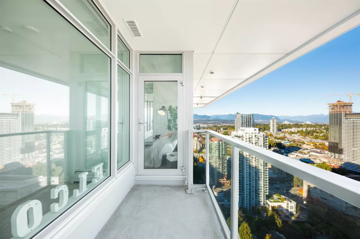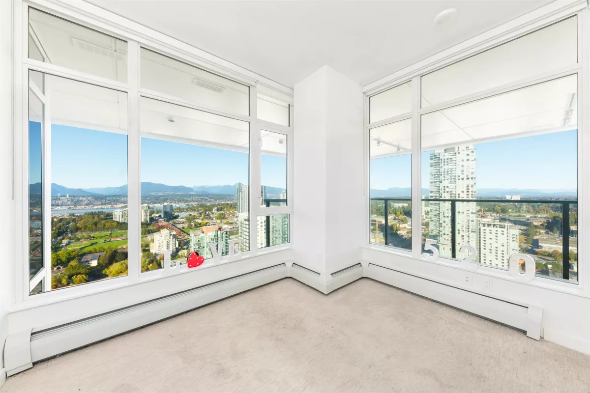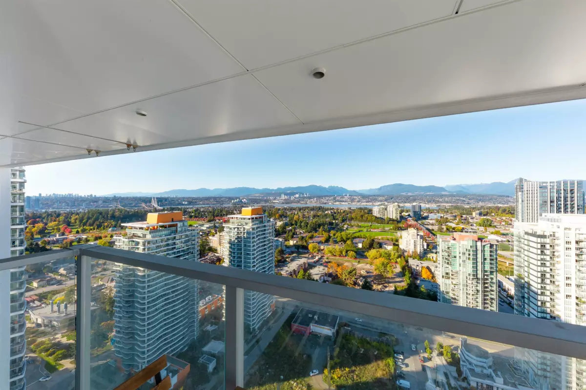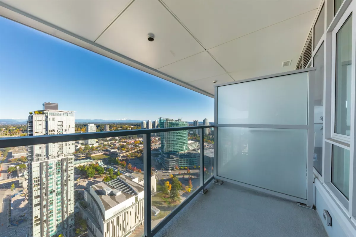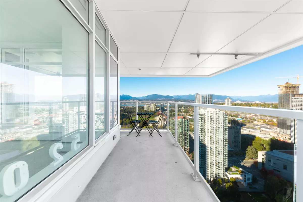 Welcome to One Central! Priced below BC Assessment! This stunning 2-bedroom, 2-bath corner unit includes 1 parking stall and a bike locker. Enjoy a bright, open layout with floor-to-ceiling windows, quartz countertops, stainless steel appliances, and a rare wraparound balcony showcasing 270° city and mountain views. Amenities feature a 44th-floor Sky Lounge, rooftop garden, gym, yoga studio, co-working space, dog park, and 24-hour concierge. Steps to SkyTrain, SFU, Central City Mall, restaurants, and Holland Park. Move-in ready with new home warranty! Open House 1:30-4:30 pm.