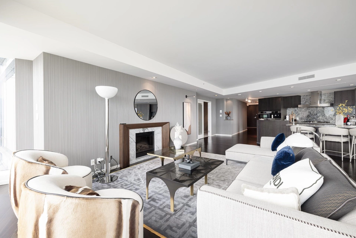 Welcome to the exclusive address of the Fairmont Pacific Rim Residences. This luxurious 2 bed, plus den home provides unobstructed and expansive views of Coal Harbour, the North Shore mountains, Stanley Park and beyond. The best floorplan and view in the building offering 180-degree views from all principal rooms, an open layout with a high-end kitchen, spa-like ensuite bathroom, a balcony overlooking the water, and air-conditioning throughout. The Fairmont amenities available to you provide the ultimate luxury living with services including a concierge, large fitness centre, outdoor pool and hot tub, spa, and fine dining. Two parking spots and one storage locker included.