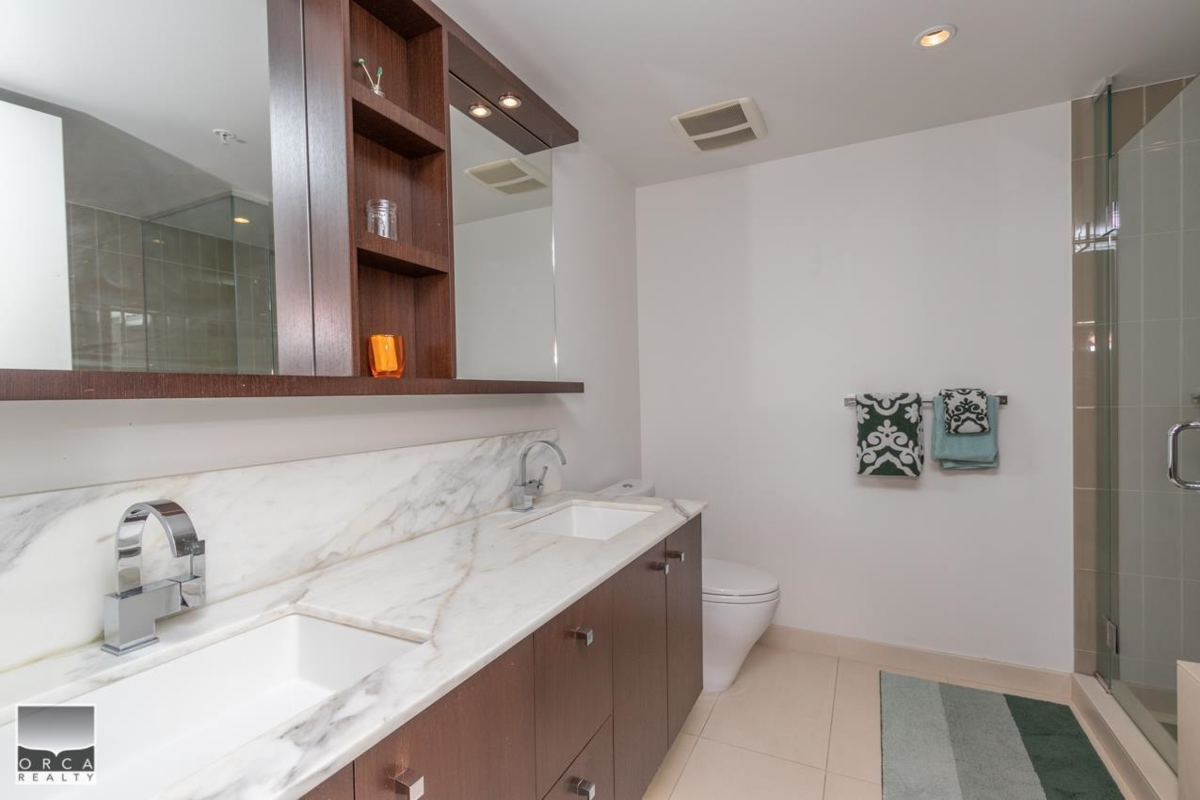 Dynamic city lifestyle at Patina, built by Concert. NE Corner unit, which offers stunning, unobstructed views of the city skyline, sparkling waters, and majestic mountains. This 1,322 SF spacious 2-bedroom/Den/flex room with 2 parking stalls (S-b-S) features quality finishes and spacious living; geothermal heating, AC, 9 ft. high ceilings, Italian porcelain tile, brushed Oak floors, Miele appliances. Amenities: bike room, fitness centre, social room, party room, landscaped garden, playground, and Concierge. Adjacent to the Robert Lee YMCA, a convenient location to restaurants, shopping, museum, theatre, parks, and all kinds of entertainment. Walk & Transit Score 100, Bike Score 91!