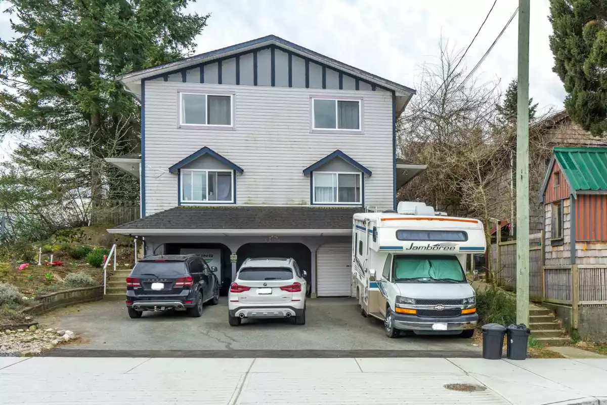 Very well located property near schools, rec center and shopping. This home is divided into two, registered, three bedroom suites each with their own laundry and hydro meters. There are two separate yards with either a deck or balcony area. Both suites have large living rooms, spacious kitchens and primary bedrooms. Originally built with three carports but one covered parking space has been converted to a storage area. Spectacular river and mountain views from the upper suite. Great for investment or two family living.