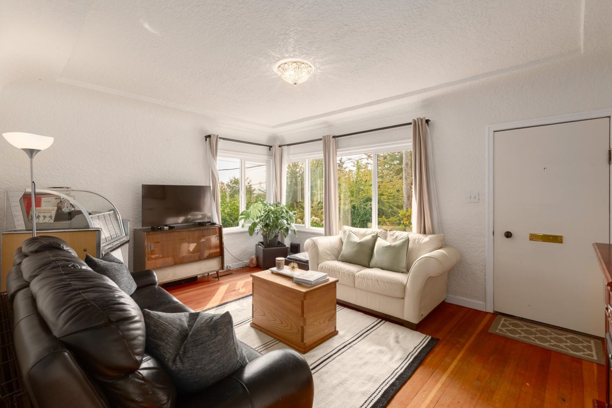 Charming 3-bed, 2-bath Sapperton bungalow with river views. Main level offers 2 bedrooms, renovated bath, fresh paint and gorgeous wood floors filled with natural light. Lower level features a fully updated 1-bed suite (with option for a 2nd bed). Lovingly-maintained with newer roof, windows, and flooring. Lane access to a powered 2-car garage- perfect for parking/workshop, or office. Surrounded by lush English gardens w/stamped brick patio, apple tree and year-round blooms. Steps to cafés, delis, restaurants, Sapperton Park, and Skwo:wech Elementary. Zoned for duplex and designated Tier 1 transit-oriented development (45x133 lot w/lane); a perfect family home or holding property.