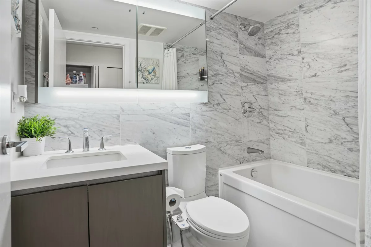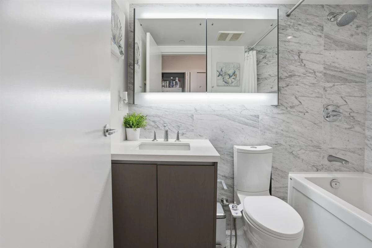 Welcome to Park Avenue by Concord Pacific, Canada’s premier master-planned community builder. This stunning 2 bed, 1 bath corner residence showcases unobstructed northeast and west views of the city skyline and mountains. Enjoy over 100 sq ft of expansive balcony space—ideal for relaxing or entertaining while taking in breathtaking scenery. The refined interior features quartz countertops, Bosch stainless steel appliances, and a gas cooktop. Includes 1 parking stall and 1 storage locker. Resort-inspired amenities include a full fitness facility, outdoor pool, hot tub, sauna, steam room, concierge service, tennis court, media and games rooms, and much more! Steps from King George SkyTrain, King George Hub, SFU Surrey, Surrey Memorial Hospital, dining, shopping, and parks.