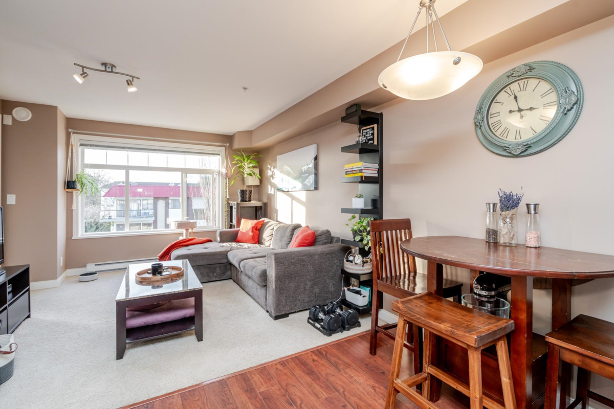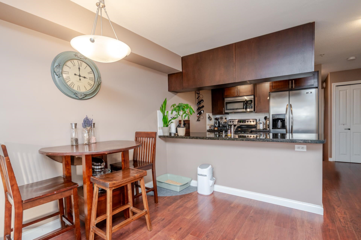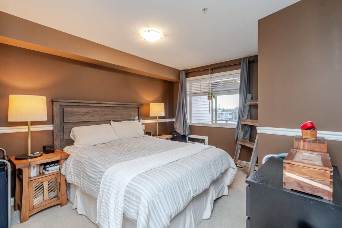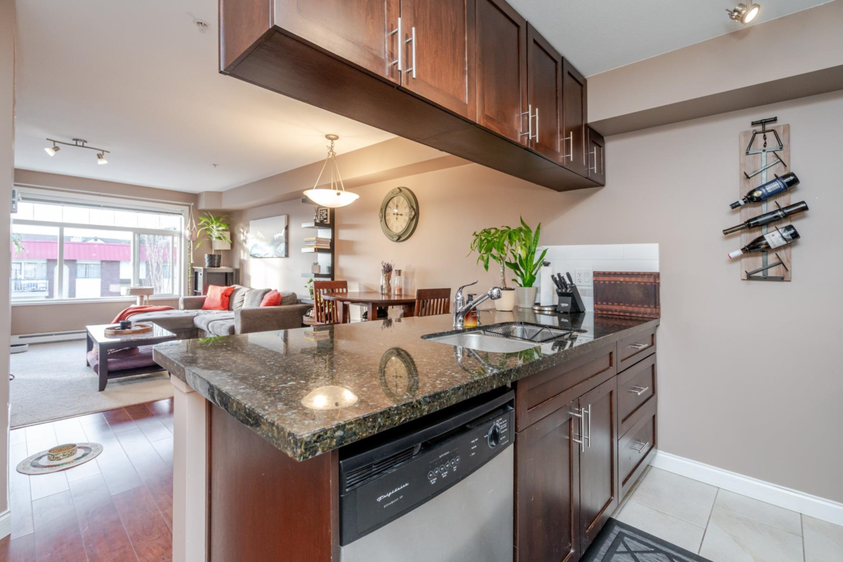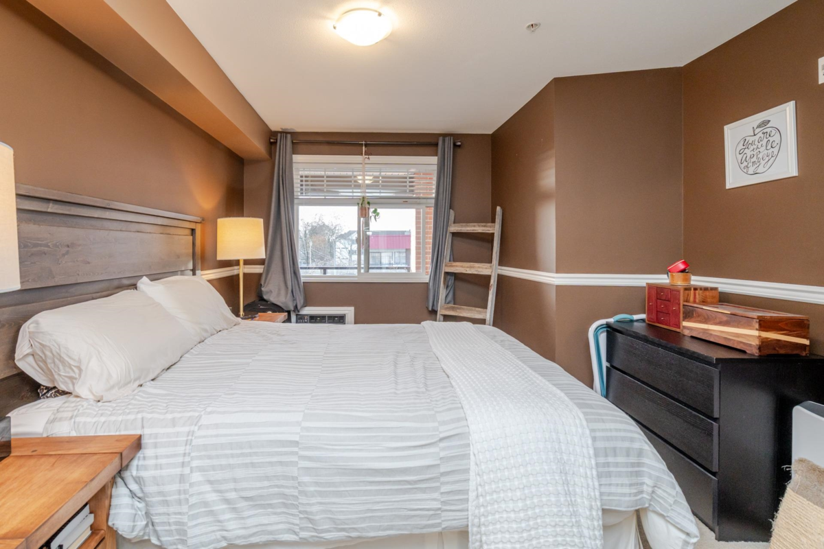 Paddington Station is ideally situated in the centre of walkable Langley City, close to the anticipated Sky-Train! This well-designed 2 bedroom home offers a spacious primary bedroom, granite countertops, stainless steel appliances, shaker-style cabinetry, an island-top with seating and a dining area. The open layout features a bright living room with a large window as well as covered deck right off the living space. The flooring is a blend of quality laminate and soft carpeting, and the primary bedroom is equipped with a built-in A/C unit. The second bedroom includes a closet but does not have a window. As a bonus, there is a large walk-in storage room with shelving located off the entry. Enjoy everything Langley City has to offer in this pet-friendly building.