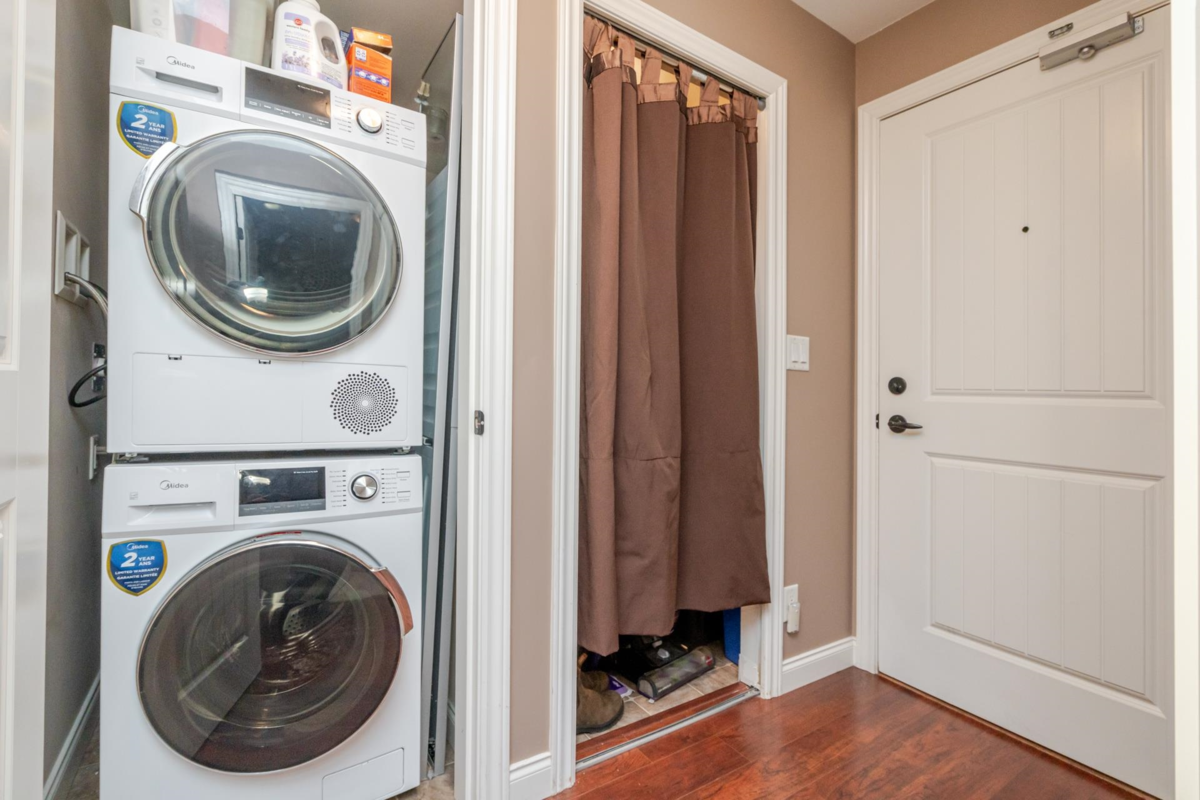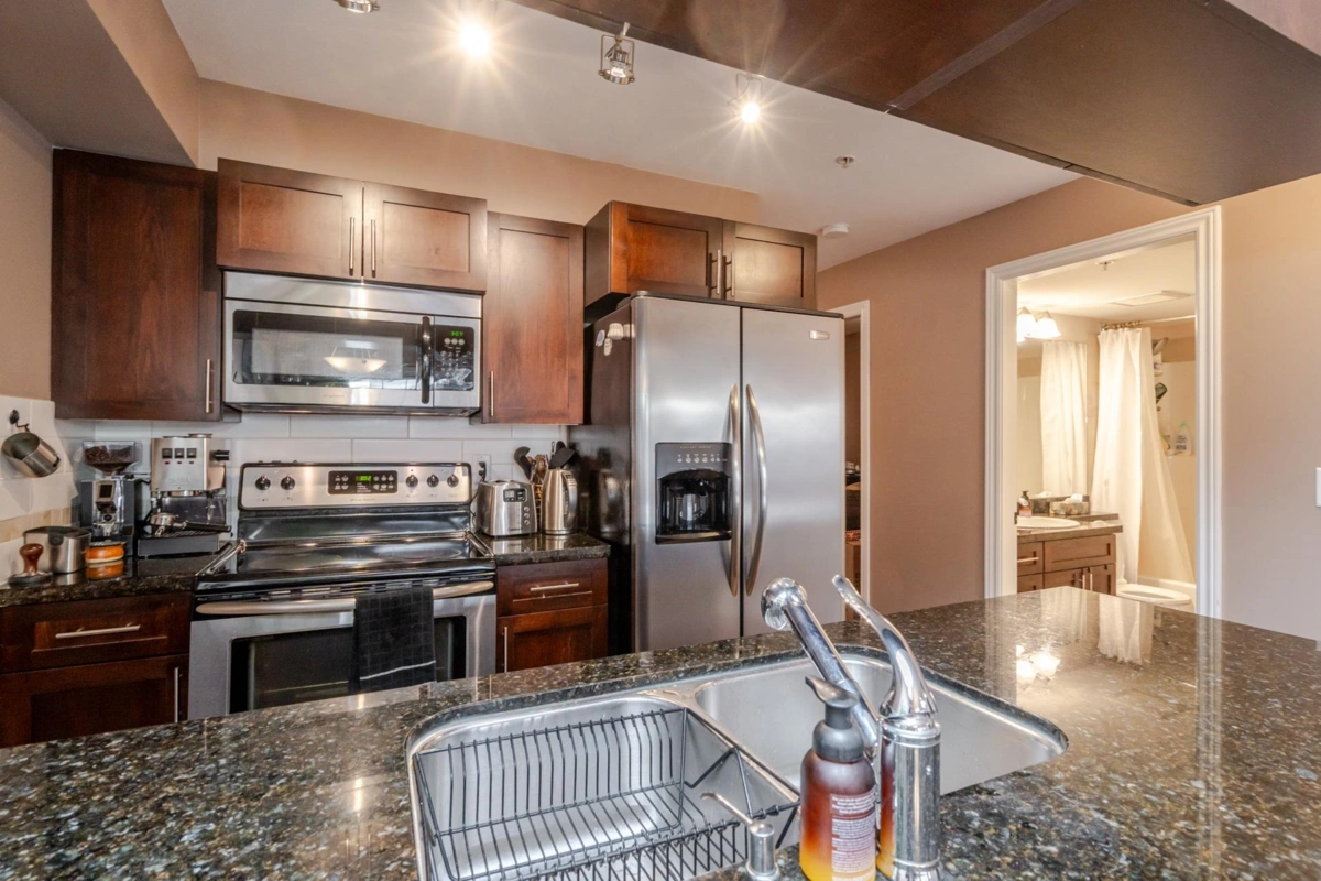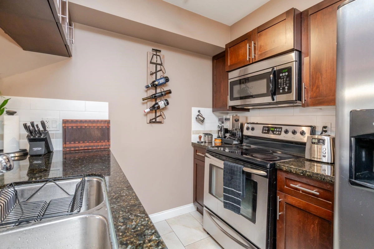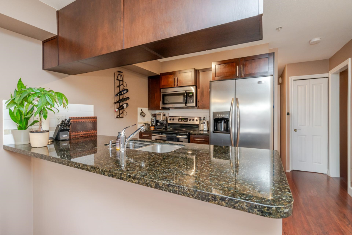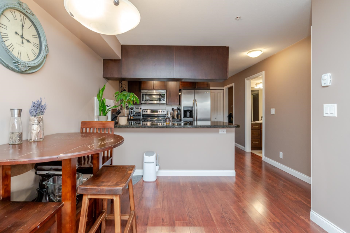 Paddington Station is ideally situated in the centre of walkable Langley City, close to the anticipated Sky-Train! This well-designed 2 bedroom home offers a spacious primary bedroom, granite countertops, stainless steel appliances, shaker-style cabinetry, an island-top with seating and a dining area. The open layout features a bright living room with a large window as well as covered deck right off the living space. The flooring is a blend of quality laminate and soft carpeting, and the primary bedroom is equipped with a built-in A/C unit. The second bedroom includes a closet but does not have a window. As a bonus, there is a large walk-in storage room with shelving located off the entry. Enjoy everything Langley City has to offer in this pet-friendly building.