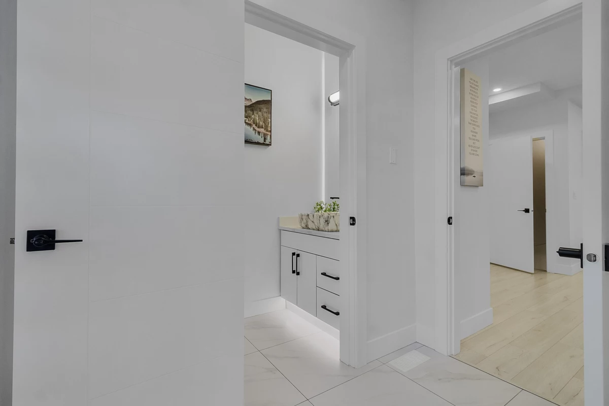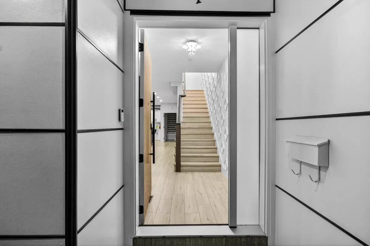 Discover your dream home! This stunning West Coast–style half duplex sits on a quiet cul-de-sac just steps from Ecole Mission Central Elementary School, Minutes away from West Coast Express. Designed with quality craftsmanship and luxury finishes, the home features an open-concept Living room, a modern kitchen with quartz countertops, a dining area, and an office on the main floor. Upstairs offers 3 spacious bedrooms, 2 bathrooms, and laundry. The basement includes a 2-bedroom registered suite with a private entrance—perfect as a mortgage helper. Enjoy premium features like central A/C, BBQ hookup, 4K security cameras with NVR, 2K doorbell, 220V EV charger in garage, and ample parking. **Almost New with No GST! Book your private showing today!