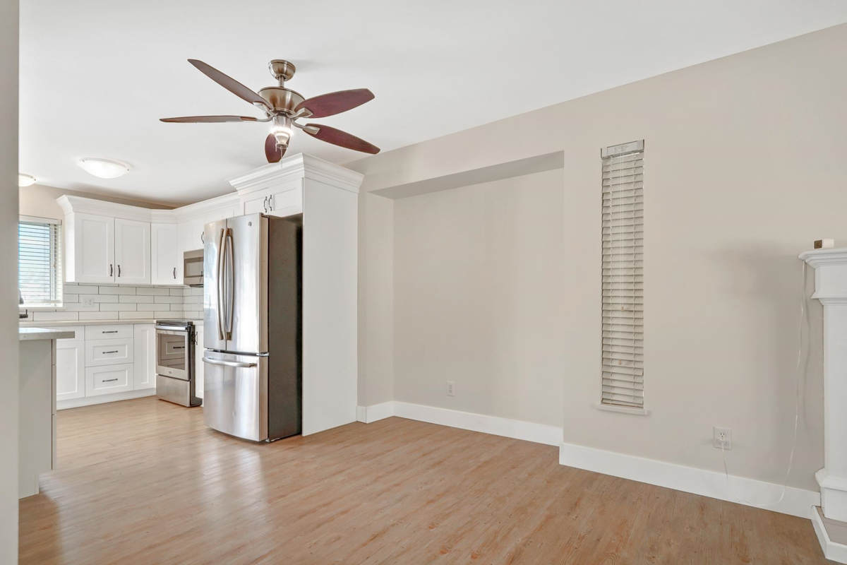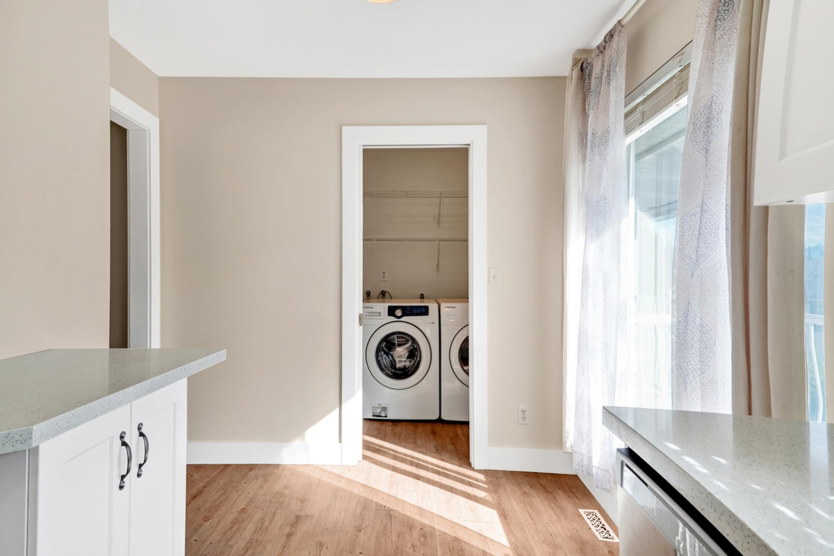 This spacious and updated RANCHER WITH FULLY FINISHED BASEMENT offers versatility and comfort for multi-generational living or investment potential. The main level features 3 bedrooms and 2 bathrooms, including renovated kitchen with quartz countertops, new cabinetry, and stainless steel appliances. New blinds and laminate flooring throughout, complemented by large windows and a gas fireplace in the living room. Mud room has newer washer/dryer, leading to balcony. The double garage and expansive driveway provide ample parking for multiple vehicles. Downstairs is a self-contained 2-bedroom suite with its own updated kitchen, full bathroom, separate entrance, and dedicated washer/dryer—perfect as a mortgage helper or in-law accommodation.