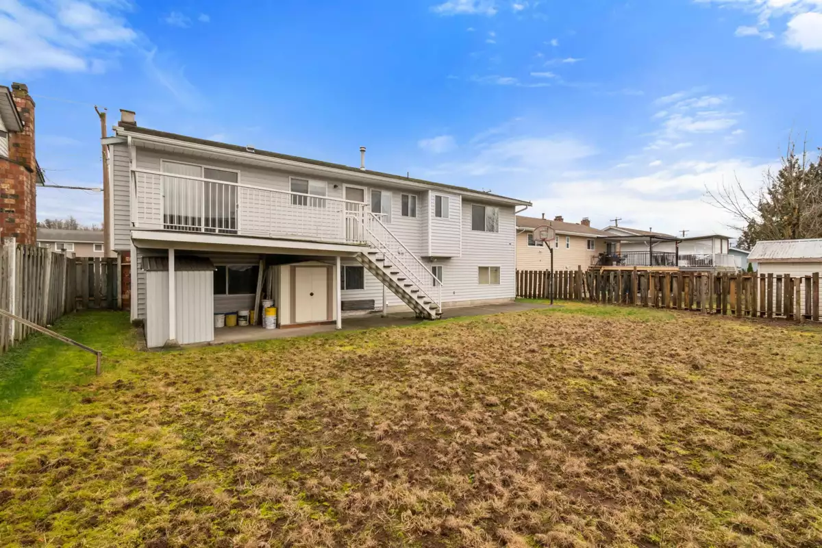 Great opportunity in West Abbotsford. This spacious family home sits on a 6,000sqft lot & offers approx 2,091sqft of living space in a well-designed, split-level layout. The home features a double garage, 5 bedrooms (3up, 2 down) plus a recreation room & offers excellent potential for a suite. The main living area includes a large living room w/a cozy wood-burning fireplace and a formal dining room w/sliding door that opens onto an oversized balcony, complete w/stairs leading down to the fully fenced backyard—ideal for families and entertaining. The generously sized kitchen offers ample counter space and cabinetry, along with a convenient eating nook. Recent updates include a furnace (2yo) & HWT (3yo). Potential future development opportunity (buyer to verify).