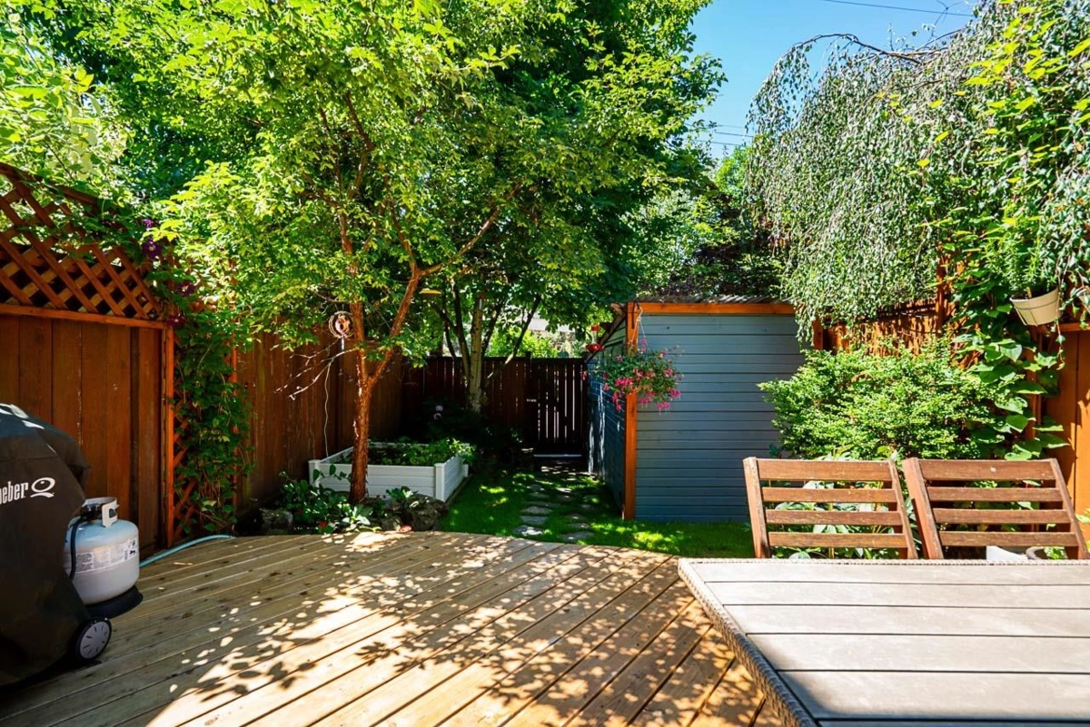 Welcome Home to “Findlay at Trout Lake” your OASIS in the heart of East Van. This bright, beautifully updated 2bed, 2bath townhome is a hidden GEM! Spread over 2 levels+a bonus attic space, this home is designed for entertaining, flowing seamlessly from kitchen to dining, living to outdoor. Upstairs offers 2 generously sized bedrooms, den+a full bath w/light tunnel skylight. Outside, enjoy the summer sun from your huge, FULLY FENCED BACKYARD compl with new cedar deck, freshly planted garden, mature trees & oversized custom built storage shed. Rest easy in this small 11 unit complex w/a well run, self managed strata, both family & pet friendly. Ideal location close to Trout Lake, Community Cr, cafes, restaurants, transit &more. Compl 1parking w/EV & in-suite storage. Schedule to view today!