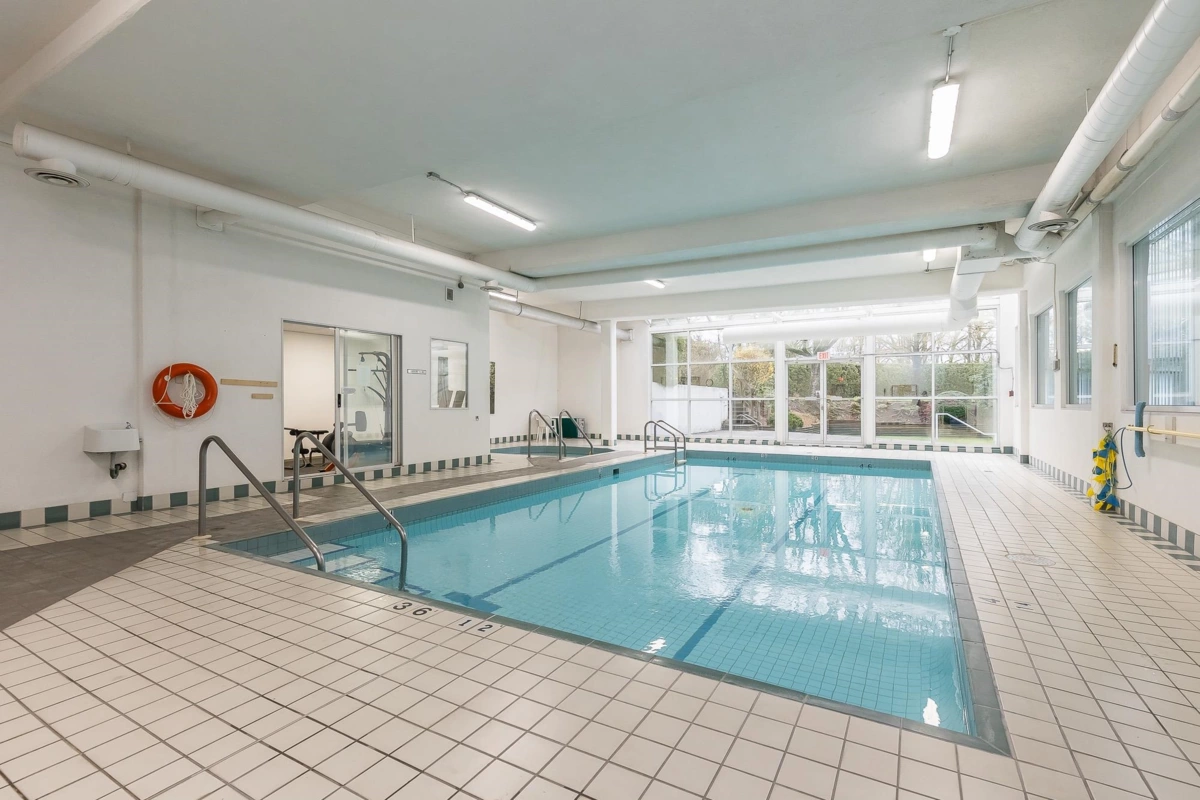 Move in Ready. Bright & Quiet. Top Floor, Corner Unit. 1449 sq ft surrounded by SE facing windows. Renovations include 2 new AC/Heat Pump Units ($15,000). Totally new kitchen with lots of cupboards and drawers. New counter tops, sink, taps, lights, appliances, paint, baseboards, window blinds, flooring, plug and light covers. Laundry room with storage space. Ample closets. Large balcony off kitchen. Storage locker in parkade. 1 Parking spot (possible to rent another). Amenities include Indoor Pool, Hot tub, Sauna, Exercise Room, Guest Suites, Libraries and Community Room. Walking distance to Mill Lake, Shopping and Transit. Age 55+. No Pets
