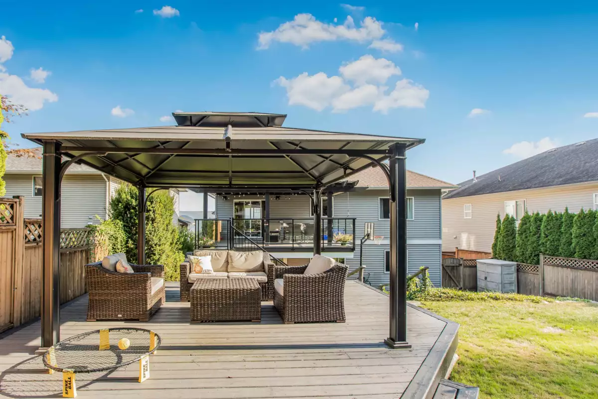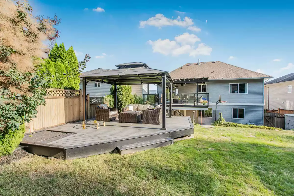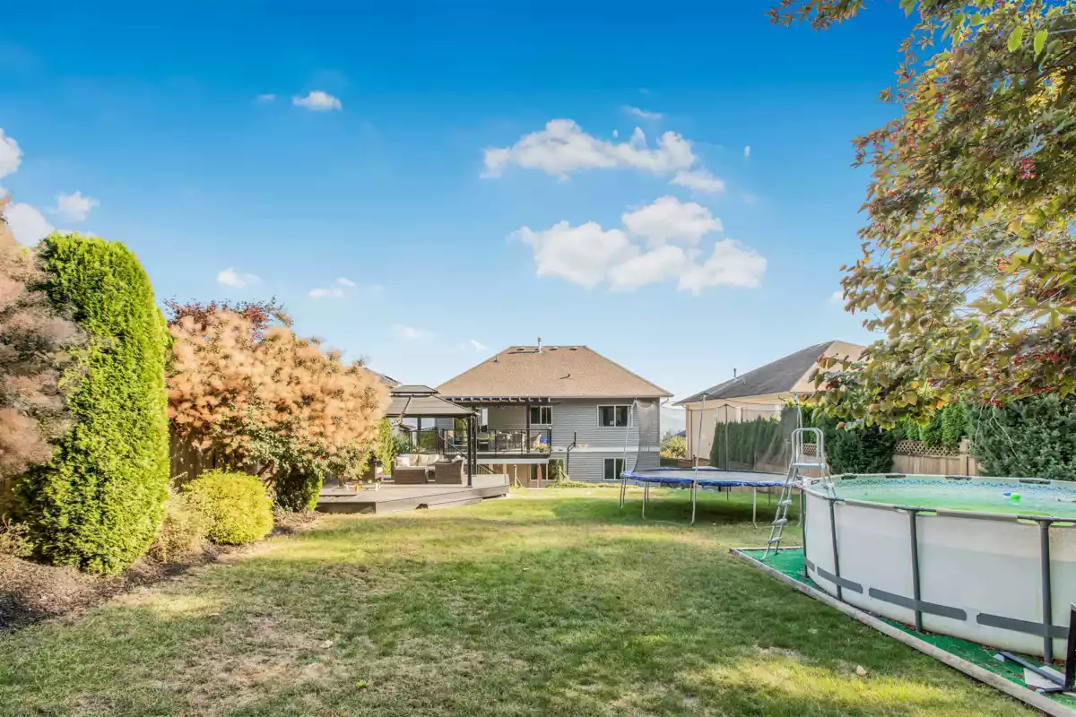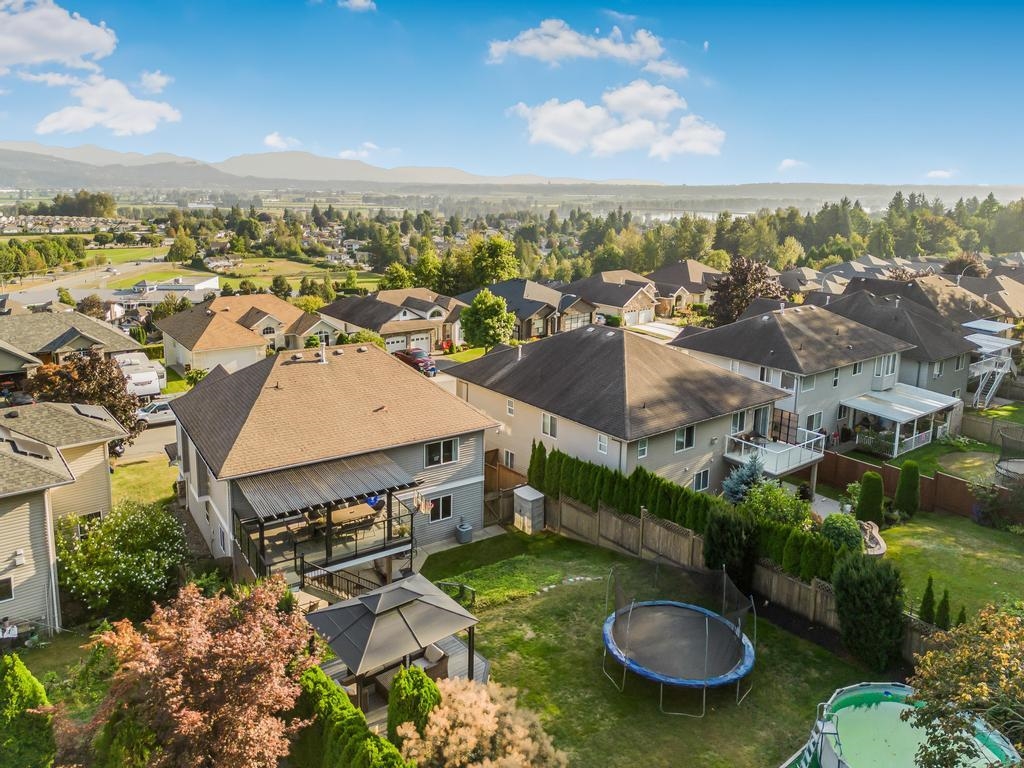 Pride of ownership shines in this custom-built home, lovingly maintained by its original owners and ideally located on sought-after 12th Ave. Enjoy sweeping valley and Mt. Baker views from a rare ¼-acre lot that is beautifully landscaped, fully fenced, and backing onto a serene greenbelt with trails and a peaceful stream. Multiple outdoor seating areas offer privacy and relaxation. Inside, bright and inviting spaces include 4 bedrooms, 3 baths, and a den that can easily serve as a 5th bedroom. Updated kitchen and baths, central A/C, and a versatile lower level featuring a large rec room, wet bar, bedroom, and full bath with excellent in-law suite potential. Minutes to Heritage Park, schools, UFV, and shopping. A truly special, move-in-ready home.