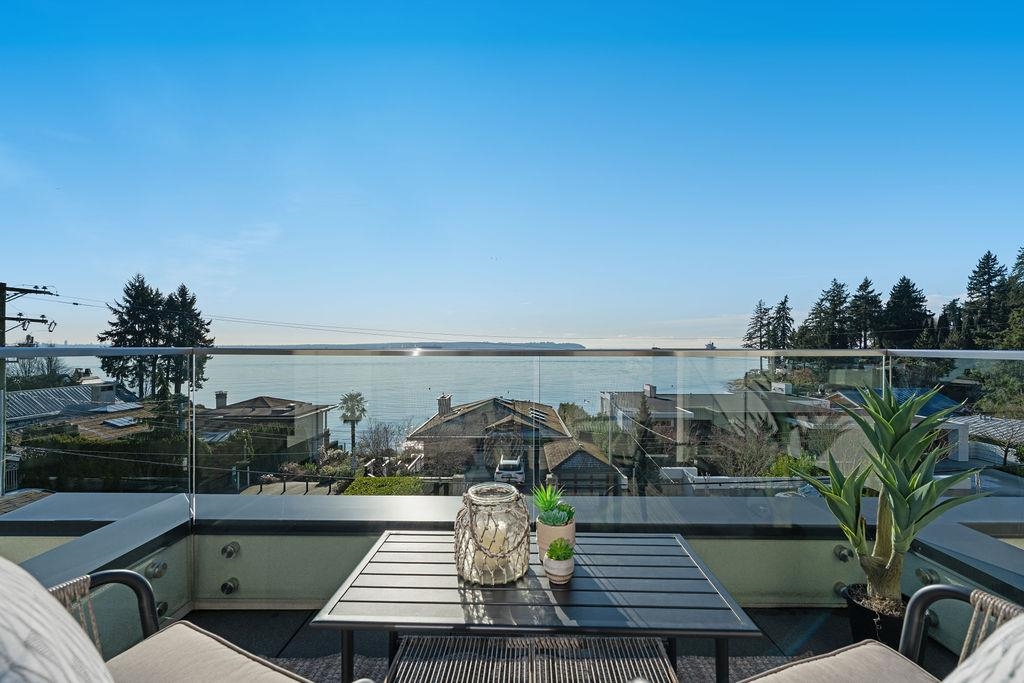 This isn't just a home ... it’s a statement. Welcome to 3373 Radcliffe Avenue in West Bay, West Vancouver, set on one of the coastline’s most iconic semi-waterfront streets. Just steps to the beach, with breathtaking ocean views, this is West Vancouver living at its most effortless. Inside, nearly 3,800 sq ft of refined coastal design unfolds across 5 bedrooms and 6 bathrooms, wrapped in light, glass (floor to ceiling Euro windows), and seamless indoor-outdoor flow. Expansive ocean-view balconies set the stage for sunset wine nights and unforgettable entertaining. The chef’s kitchen is sleek and intentional, complete with premium appliances and a separate wok kitchen—exactly what you’d expect at this level. An in-home elevator, solar power, radiant heat, A/C with HRV, and full security.