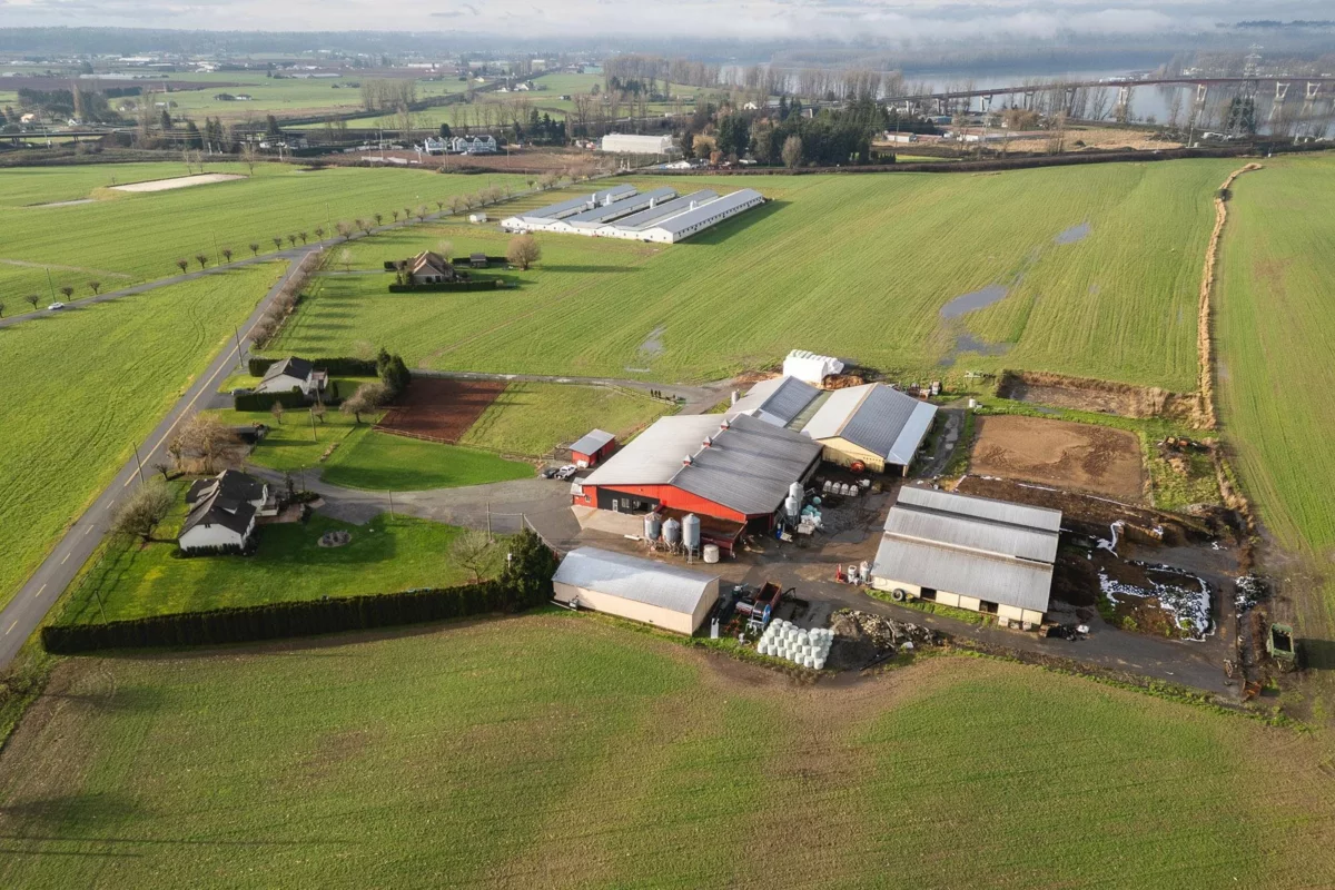 Stunning 60-acre dairy farm located in the sought-after Matsqui area, offering breathtaking views of the surrounding mountains and the Fraser River. The property features two detached homes, with the second residence currently generating rental income. Farm infrastructure includes a newly installed double 10 parallel with 150 stalls for room to support young stock, over 40,000sqft of covered barn space, two 30’ x 80’ bunkers with concrete panels, one 50’ x 150’ open bunker, and a 60’ x 80’ asphalt pad for extra feed storage. A 30’ x 80’ triple bay shop with 400-amp service adds excellent utility. This land is very fertile, well-drained soil makes this property ideal for all crop production. Along with water rights to the Fraser River distributing to multipal hydrents in the field.