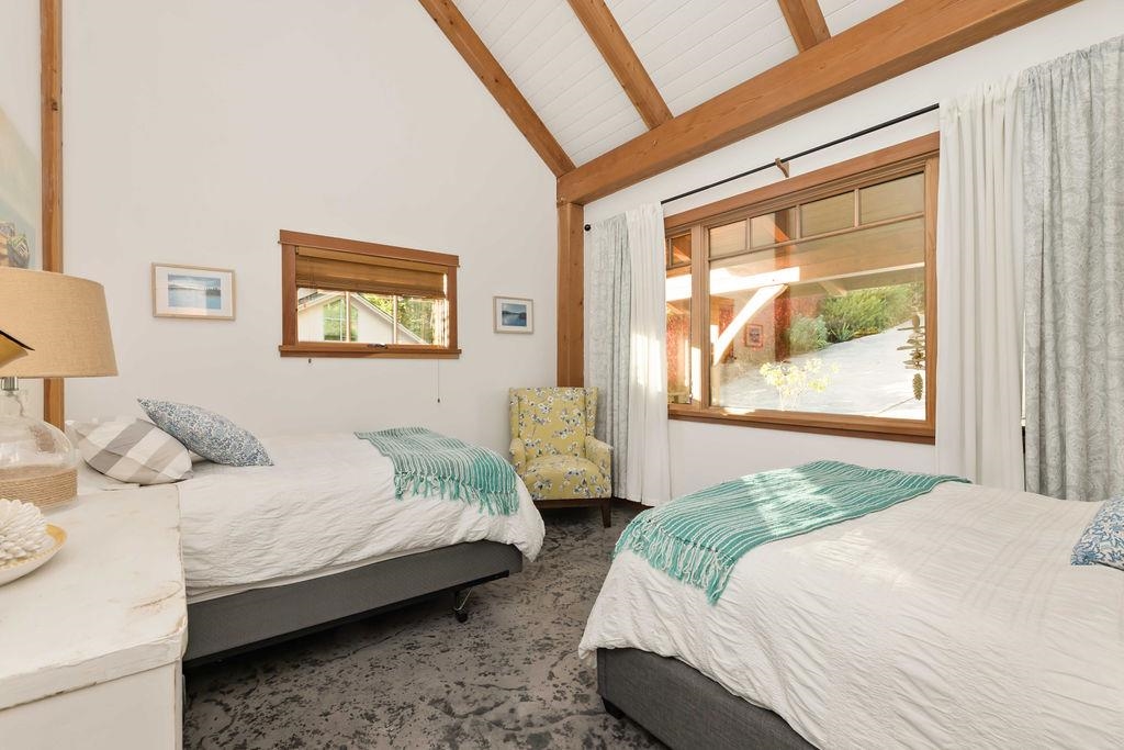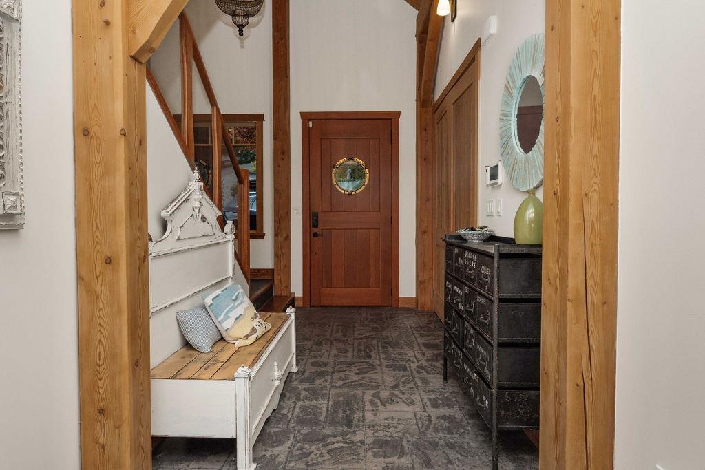 Experience the beauty of true waterfront living in this exceptional timber frame beach house on sought-after Beach Avenue in Roberts Creek. Set along the shoreline, this home is perfectly positioned to capture expansive southwest-facing ocean views and spectacular sunsets year-round. Rich natural wood craftsmanship highlights soaring ceilings, exposed beams, and light-filled living spaces with seamless indoor-outdoor flow. The lower level features a well-appointed two-bedroom suite ideal for extended family or rental income, complemented by a separate caretaker suite for added flexibility. Step outside to the beach just beyond your door and enjoy an ever-changing coastal landscape, only minutes from the heart of Roberts Creek with no foreign buyer tax.