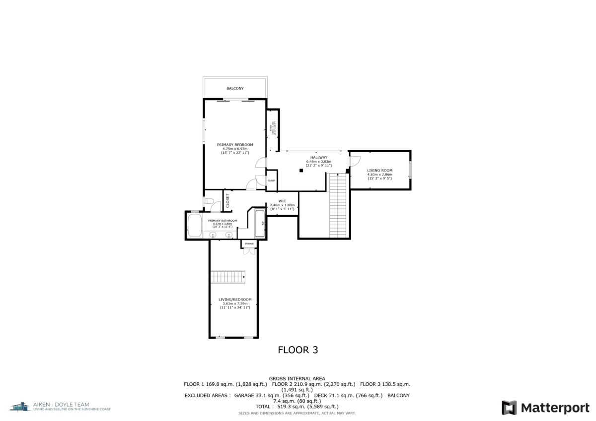 | Above Level | Primary Bedroom | 22'8 x 22'8 ft |