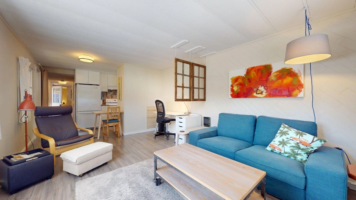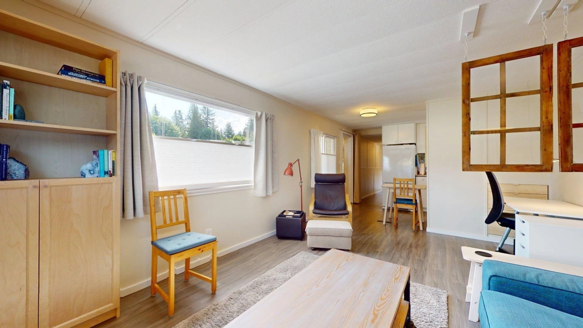 Welcome to 34 Angelo's! This adorable 2 bedroom plus den home is the perfect place to call home. Significantly renovated over the years including roof, windows, gas furnace, kitchen, bathroom, plumbing, electrical, flooring, and detached studio. Stepping into the home you have a large foyer/den which is perfect for storing gear to use as an office. Open living and dining area flows into the galley kitchen. Primary bedroom with built in closet and dresser. Step back outside to your tiered and covered deck that leads to the fully finished studio. The Studio space has power and could be used for a workout room, an excellent separate office, or entertainment area. Fully fenced yard off the deck gives you a lovely private space just for you or to share with pets.
