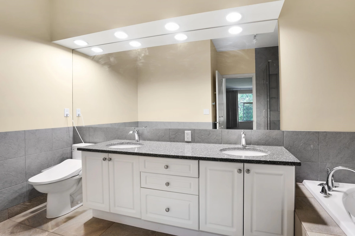 Welcome to "Seasons by the Lake," a prestigious gated sanctuary steps from Deer Lake trails. This fully renovated 2-level townhome redefines luxury with 2,695 sqft of sophisticated living space, highlighted by soaring 18 ft vaulted ceilings and the warmth of radiant floor heating. The main floor features elegant living and dining areas, alongside a gourmet kitchen w/ premium SS appliances and a sun-drenched breakfast nook that opens to a balcony with lush, serene views. 4 spacious bedrooms, including a spa-inspired primary ensuite and an enormous lower-level recreation room perfect for a home theatre or gym. Perfectly situated minutes from Metrotown and Hwy 1, this residence provides the ultimate lifestyle experience and remains a rare opportunity in the elite Oakmount community.