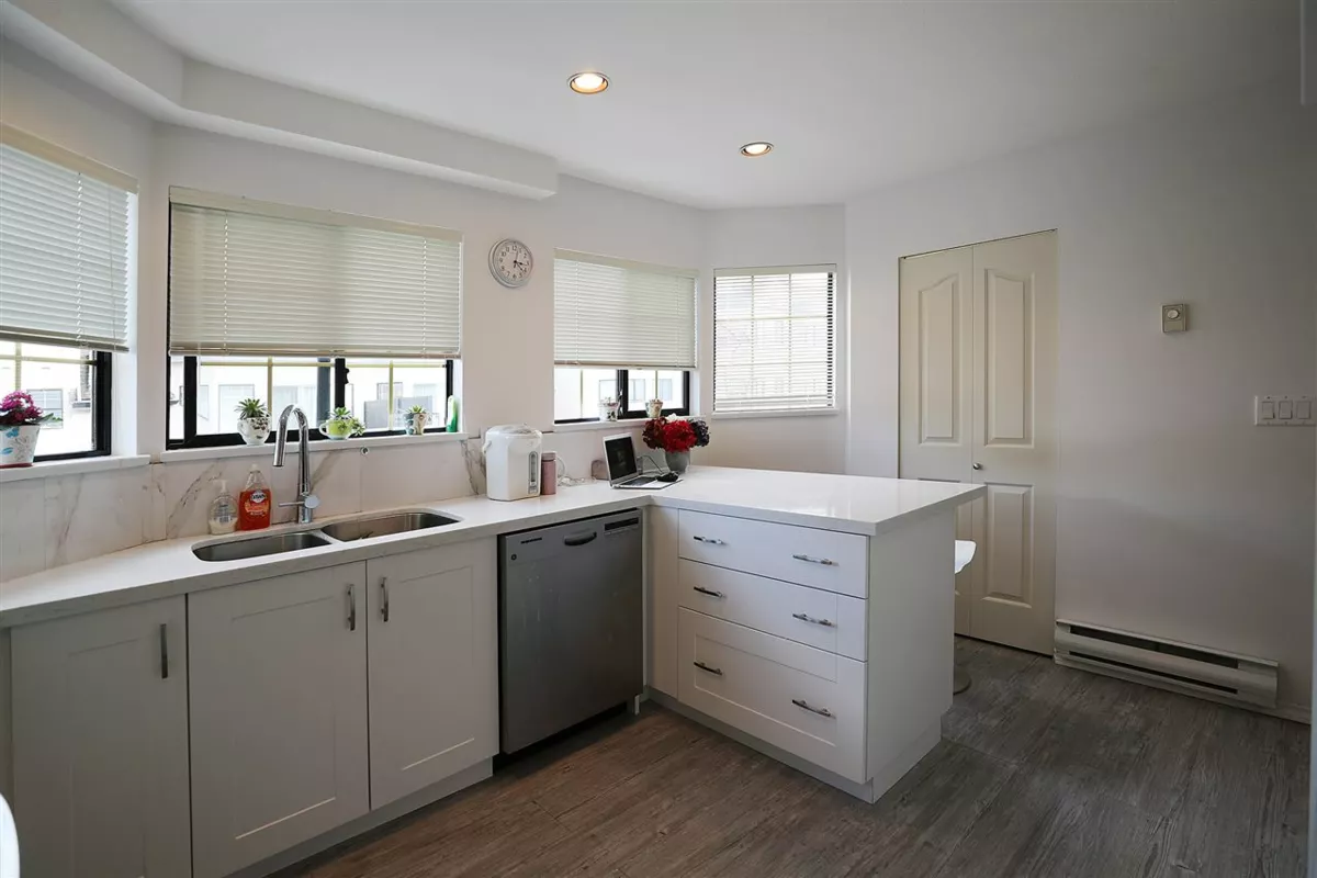 Great location! European Builder . Spacious 1747 sqft with 4 bedrooms and 2.5 bathrooms. 3 level , the main level with high ceiling living room, few steps up , the dinning area and kitchen, upper level with 3 bedrooms, on the top floor has a game room or the no. 4 bedroom. Around 2019 : strata updates include new roof, new exterior paint, new balcony and fence. Unit fully renovated in 2019 :New kitchen with White cabinet, quartz countertop, new appliances, new bathrooms, painting. Extra crawl space can be your big storage. 1 car covered garage, big sundeck on the top floor. The unit facing West and East, sunny and bright.