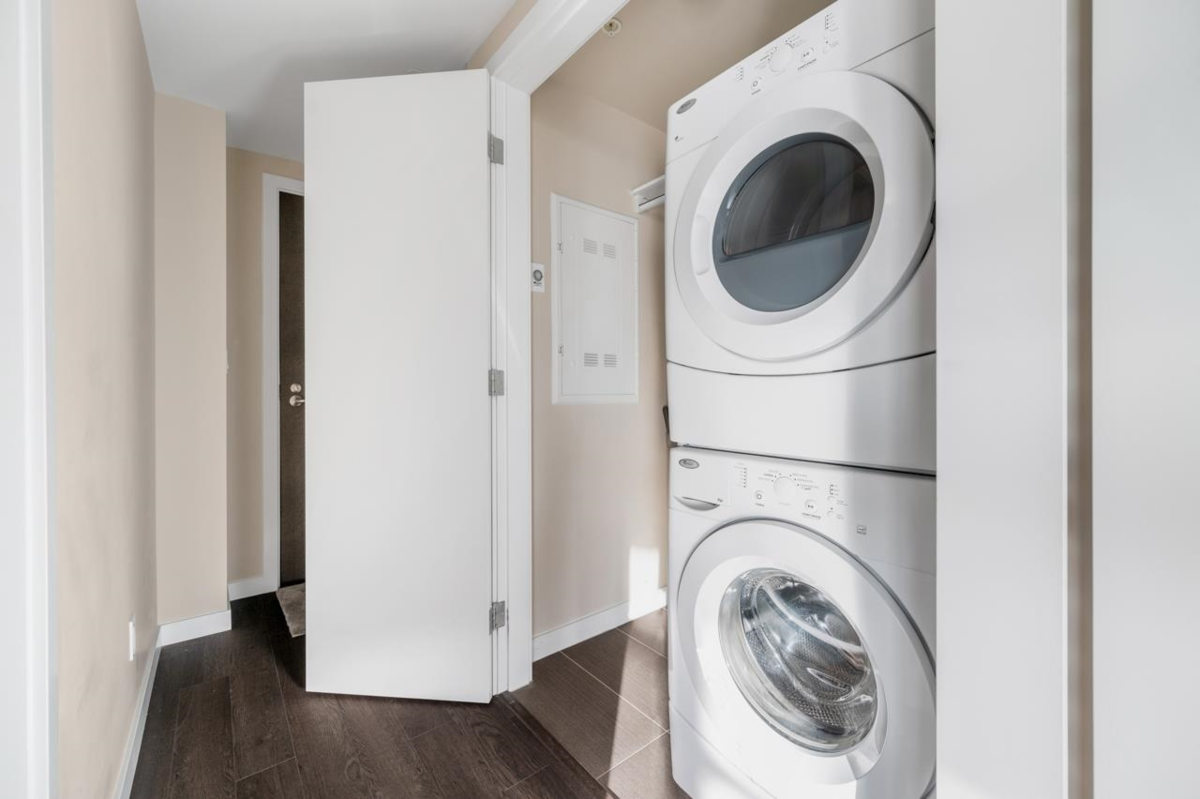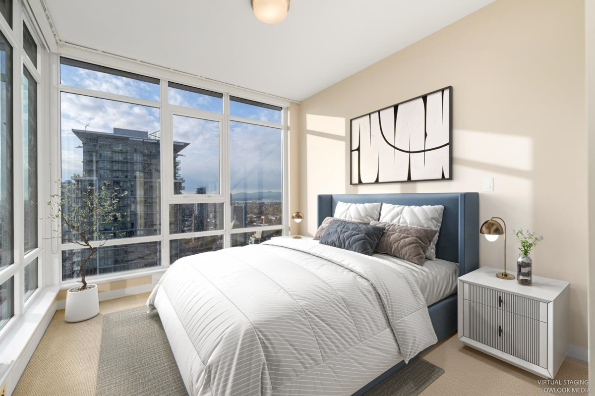 Located in the landmark Brentwood community SOLO District - Altus Tower by Bosa’s Appia, this 34th-floor corner 2 Bed+Den, 2 Bath skyhome showcases panoramic views of the city skyline, Burrard Inlet, and Lions Gate Bridge. The bright open layout features floor-to-ceiling windows, 9-ft ceilings, and a modern kitchen with quartz countertops, premium S/S appliances, gas range & large island. Enjoy year-round comfort with an efficient. Geothermal system providing heating & cooling. Split bedrooms ensure privacy, plus a flexible den. Residents enjoy a top-floor Sky Lounge view deck with 360° panoramic views, fitness centre, rooftop garden, sport court, BBQ area & 24-hr concierge. Steps to SkyTrain, Whole Foods & The Amazing Brentwood.Includes 1parking& 2 locker.