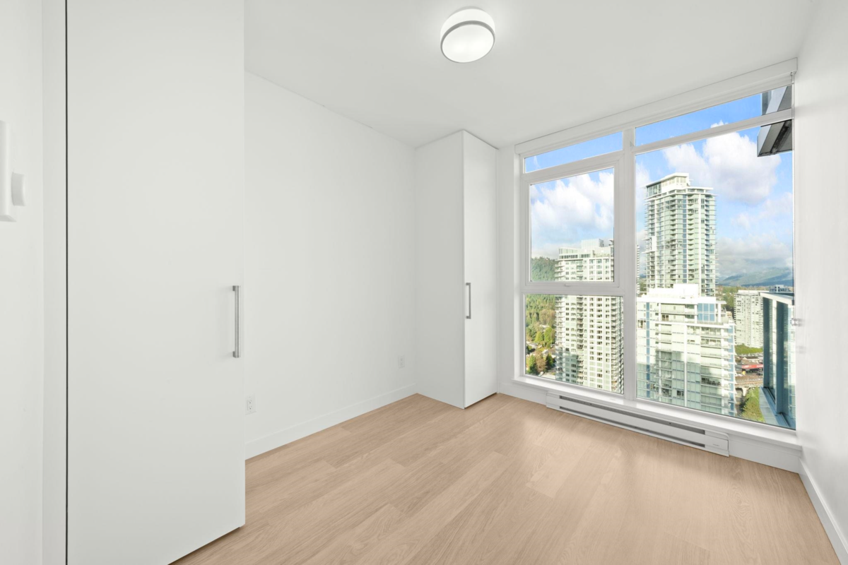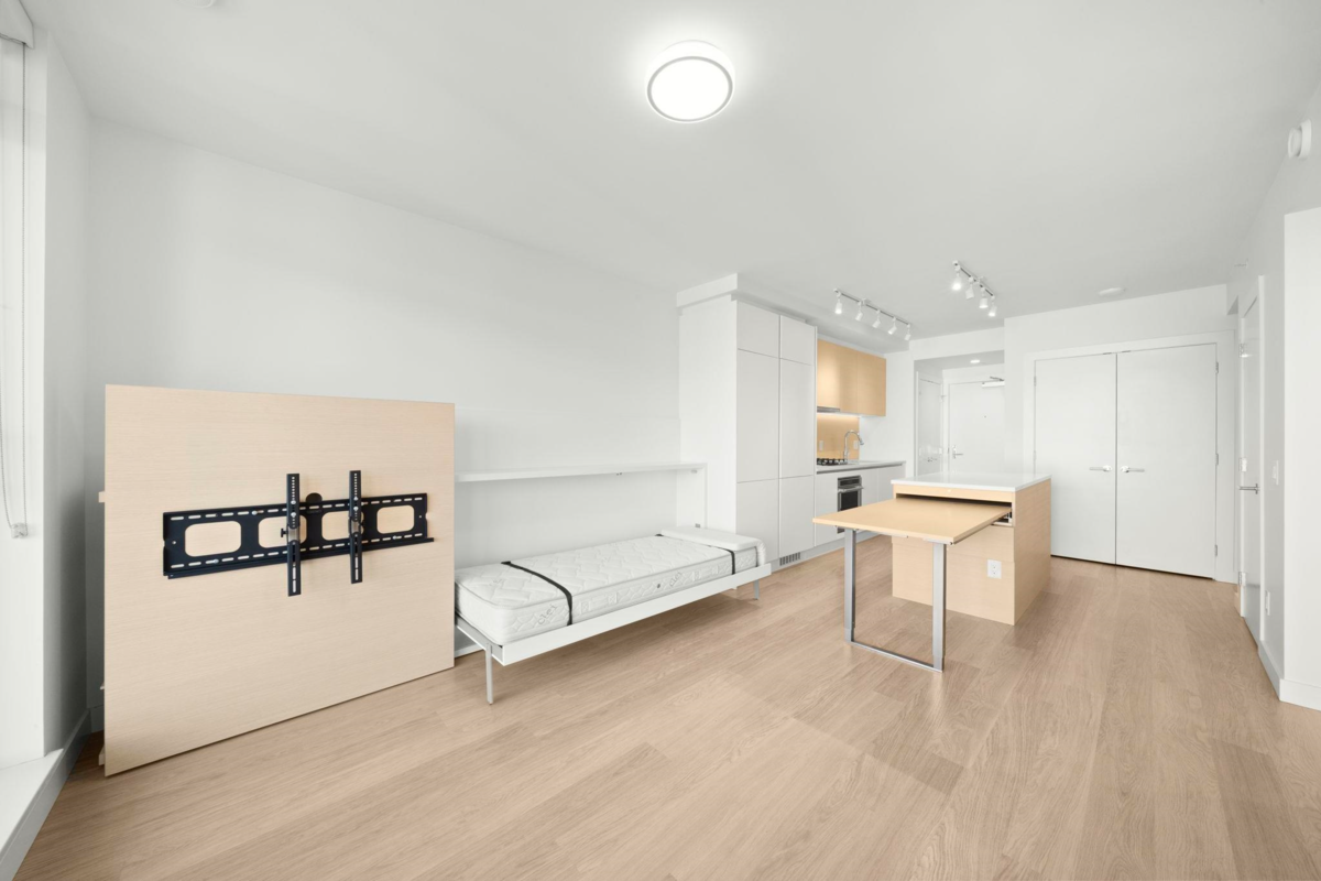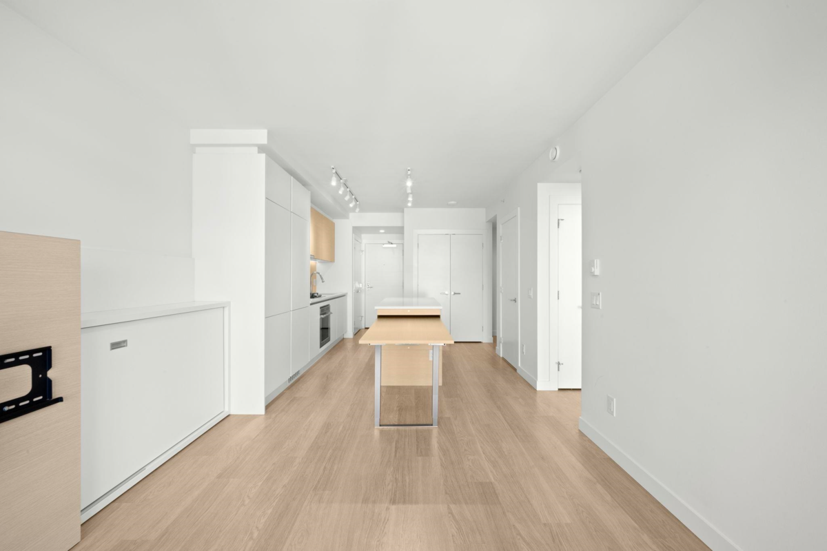 Discover Lougheed Heights by Bosa Properties – a sleek, modern 1-bedroom + den residence on the 34th floor, ideal for investors or anyone craving vibrant city living. Perched high above the city, this bright corner unit delivers breathtaking panoramic views of the mountains and downtown skyline. The open-concept layout flows seamlessly into a gourmet kitchen boasting European-inspired stone countertops, premium KitchenAid stainless steel appliances, and luxurious high-end fixtures. BosaSPACE design maximizes every inch: retractable 8-seat dining table and hidden pull-down guest bed integrated into the TV feature wall. Resort-style amenities include a heated outdoor pool, fully equipped gym, sauna, sports courts, private theatre, library, and music practice rooms.