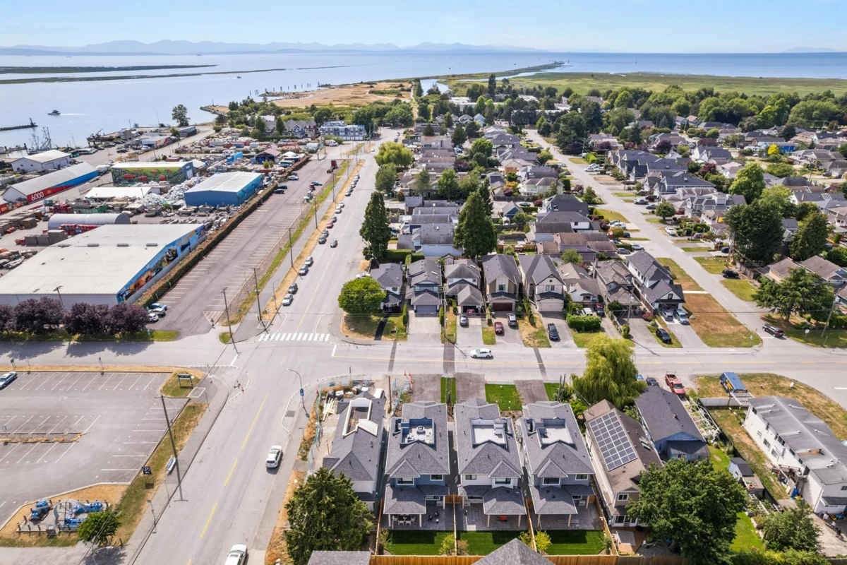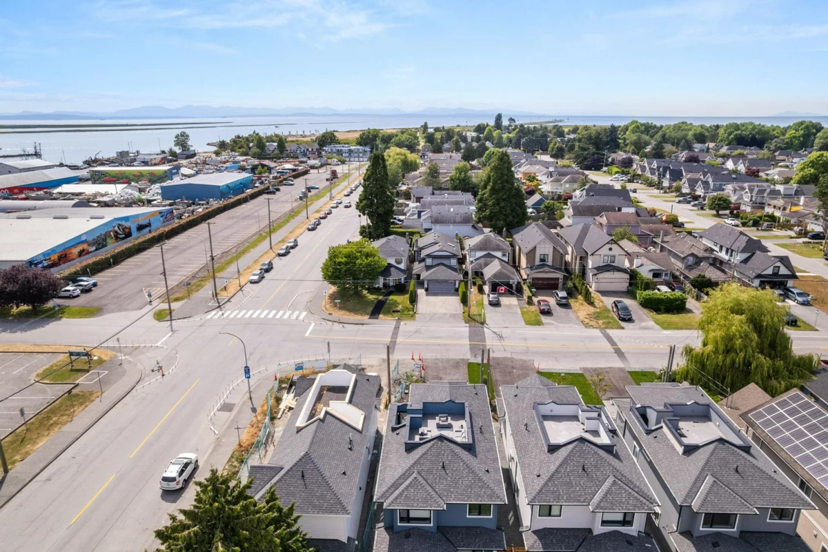 A rare corner home located in the heart of Steveston Village, discover modern West Coast living with exceptional craftsmanship in this stunning new single-family home by Penta Builders Group. This corner residence spans 1,926 sq ft and features 4 spacious bedrooms and 2.5 bathrooms. Enjoy an extensive patio and deck in the private fully fenced outdoor area off the living room, an EV-ready double garage, and an expansive rooftop deck showcasing water and mountain views. Unbeatable central location in the heart of Steveston Village, just steps to shops, dining, and the waterfront. Built by a respected local builder known for exceeding expectations. Open House Saturday & Sunday, January 17th/18th, 2-4pm!