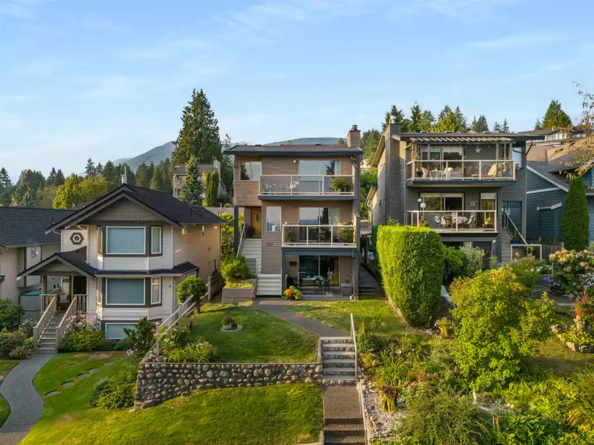 Reduced by $100k! Welcome to 342 E 26th St, a beautifully renovated 4 bed, 3.5 bath home in the highly sought after community of Upper Lonsdale, NV. Offering 2,321sqft of living space, 2 car garage plus plus 1 additional parking spot adjacent to the lane. This home offers stunning partial views of the city, Lions Gate, and mountains from 3 balconies and a private patio. The lower level has a separate entrance, perfect for a bachelor suite, in-law accommodation, or home office. Updates include a modern kitchen, renovated baths/ heated floors, new heat pump with A/C, hardwood, luxury carpet, and fresh paint. Ideally located on a quiet no-through street near schools, shops, transit, and the new Harry Jerome Rec Centre. This move-in-ready home shines with pride of ownership.