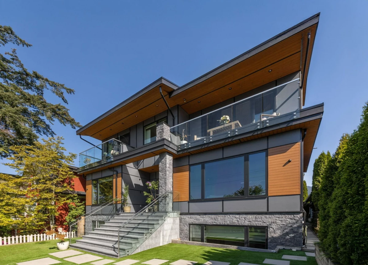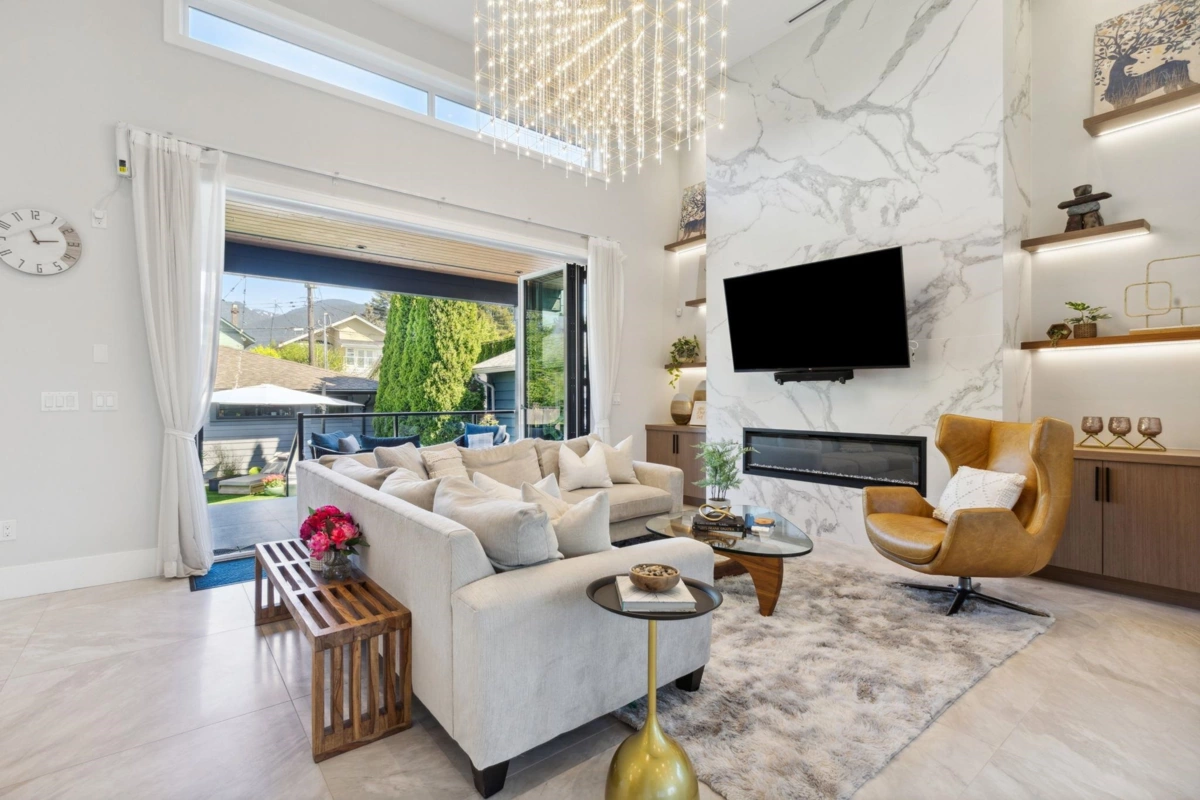 Central Lonsdale Gem! This exceptional 8 bedroom, 5 bathroom family home was crafted with uncompromising quality. The main floor offers a gourmet kitchen with premium appliances, a full prep-kitchen, and seamless flow to expansive living/dining areas with eclipse doors opening to a covered entertainer’s deck. Upstairs features 4 bedrooms and 3 baths, including a luxurious primary with private deck to enjoy city views. The lower level includes a bright 2 bedroom legal suite, theatre, wet bar, and gym or guest space. Extras: fenced yard, triple garage, RV parking, and only steps to all Central Lonsdale conveniences. A rare find!! NEW PRICE! OPEN HOUSE SATURDAY OCT 4TH 2-4PM.