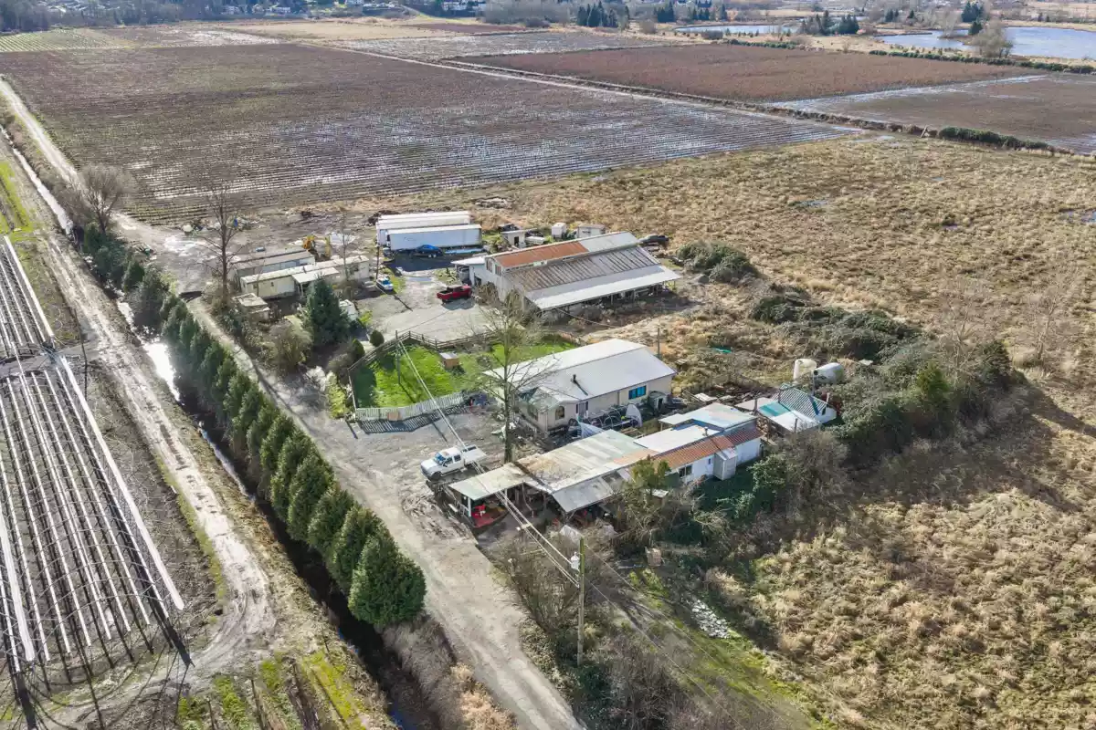 COURT ORDERED SALE. 88.8 acre Matsqui acreage on the edge of town, just minutes to Abbotsford city centre. Property features 3 trailers which are currently rented and 1 shop with loft. Fertile Fraser Valley land currently planted in blueberries with drip irrigation serviced by two pumping stations. Established farm roadways throughout the property for efficient access.