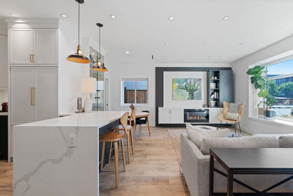 Impressive & beautifully appointed 4 bed, 3.5 bath duplex offering 1,486 sq.ft. of highly functional living with the feel of a detached home. Thoughtful layout with 3 bedrooms on one level plus the option for a second primary above, complete with a wide patio offering relaxing city views. Quality finishes include Fisher & Paykel integrated appliances, hardwood floors, A/C, NEST controls, security system, wine fridge, feature wall, and custom millwork throughout. Enjoy a landscaped south-facing oasis with Figaro Garden hardscaping and self-watering flower beds. The upgraded garage boasts a Tesla charger, premium flooring, and ample storage. Ideally located with quick access to Hwy #1, North Shore, Port Moody, and all the shops, cafes, and parks of Hastings Sunrise.