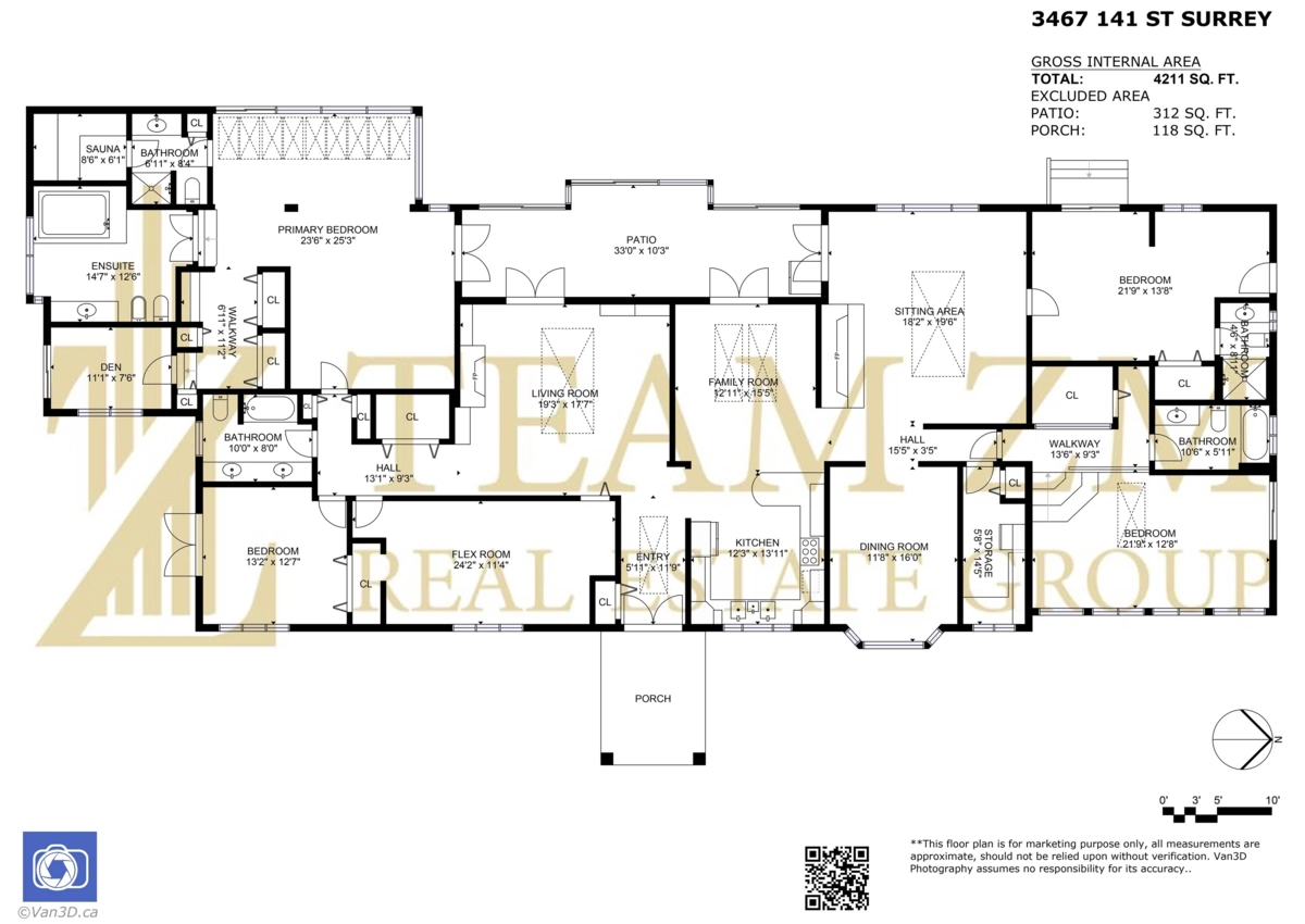 Nestled on a full acre in a quiet, highly sought-after neighborhood, this spacious 4,211 sqft rancher offers a perfect blend of comfort and quality. The home features numerous updates over the years, including beautifully renovated kitchen with maple cabinetry, granite countertops, and high-end appliances, plus upgraded windows and doors for enhanced efficiency and style. Recently updated water heating system ensures worry-free living. Bright and airy interior with 8 skylights and wood flooring throughout. Enjoy the luxury of a computer-controlled, heated saltwater pool with modern equipment. Located in the prestigious area of Crescent Park. Chantrell Creek Elementary and Elgin Secondary catchment. Close to the beach, golf course, nature walks, and 3min to HWY.