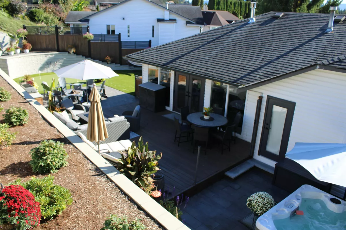 Neighbourhood! Renovations! Backyard oasis! Totally renovated McMillan home on a quiet street just a few blocks to everything (Abbot Rec Ctr, all 3 levels of school including Yale Sec, shopping...). This backyard will keep you home - level walk-out from main, lounging deck, outdoor kitchen w/ natural gas grill & gas fire pit, artificial turf with putting green, hot tub (w/ access from primary bdrm!), engineered decorative block wall with built-in lighting. Updates include - gorgeous custom kitchen w/ quartz, stainless steel appliances, wine fridges, commercial grade sink, recessed lighting, stunning baths w/ custom showers, flooring thru-out, air conditioning, light fixtures, moldings, hardware, stacked rock f/p. RV parking. Amazing East Abbotsford neighbourhood just minutes to freeway.