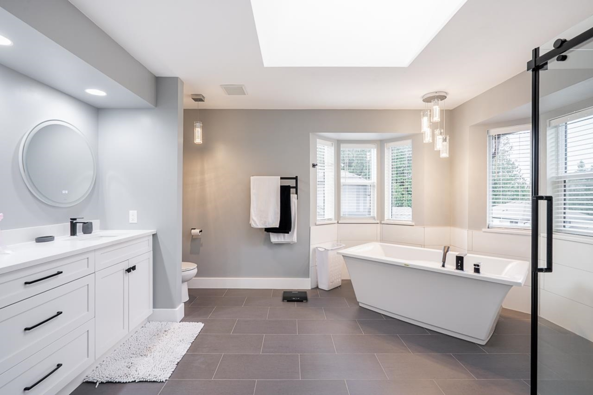 Tucked away in sought-after Everett Estates, this expansive 6 bed/4 bath home offers over 4,600 sqft of updated living space on a 9,047 sq ft lot w/ Mt Baker views, huge driveway + room for RV.Main level features entry w/ curved staircase & vaulted ceiling, living & dining rooms, versatile office & large windows that fill the home w/ natural light.Huge kitchen w/ ample cabinetry opens to a breakfast nook & family room.Enjoy year-round outdoor living on the glass-covered deck area w/heaters & covered hot tub.Upstairs the spacious primary retreat features a cozy f/p, WIC & beautifully renovated spa-inspired ensuite w/ soaker tub, glass shower, dbl vanity & skylights.Bright lower level offers a games room, wet bar, rec room & 2 bedrooms.Walking distance to all levels of schools, parks & more!