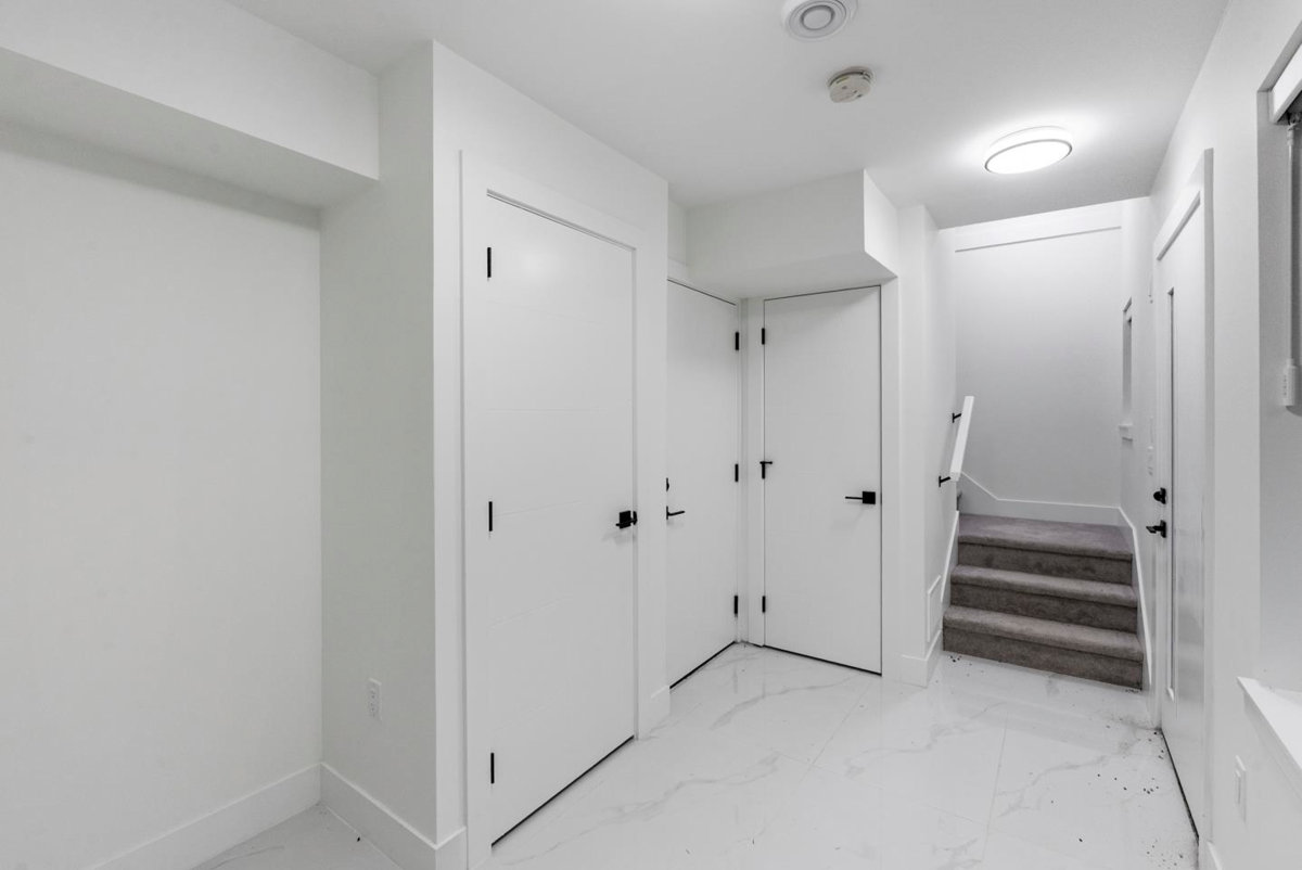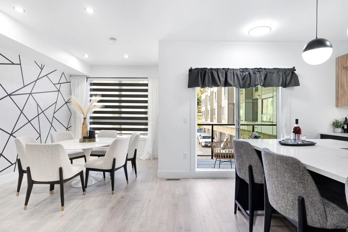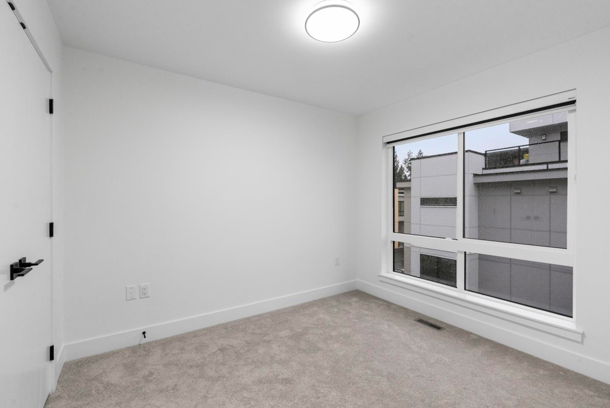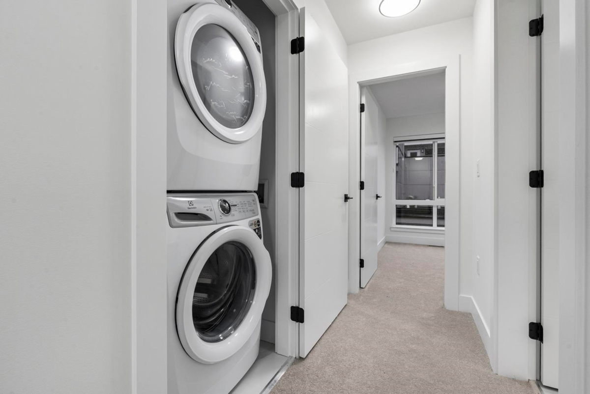 Brand-new, ultra-modern 3-bedroom + Den, 2.5-bath townhome backing onto a protected lush greenbelt. The bright, airy main level features 9' ceilings, Fisher & Paykel appliances, motorized blinds, and a kitchen made for cooking enthusiasts with a gas cooktop, quartz countertops, and ample storage in custom cabinetry. The Park Landmark features a playground surrounded by nature and private amenity building perfect for events. This unit features a spacious double garage with rough in EV. Just a short drive to Hyland Elementary and Sullivan Heights Secondary, and minutes to Newton Town Centre, shops, parks, transit, and major amenities.