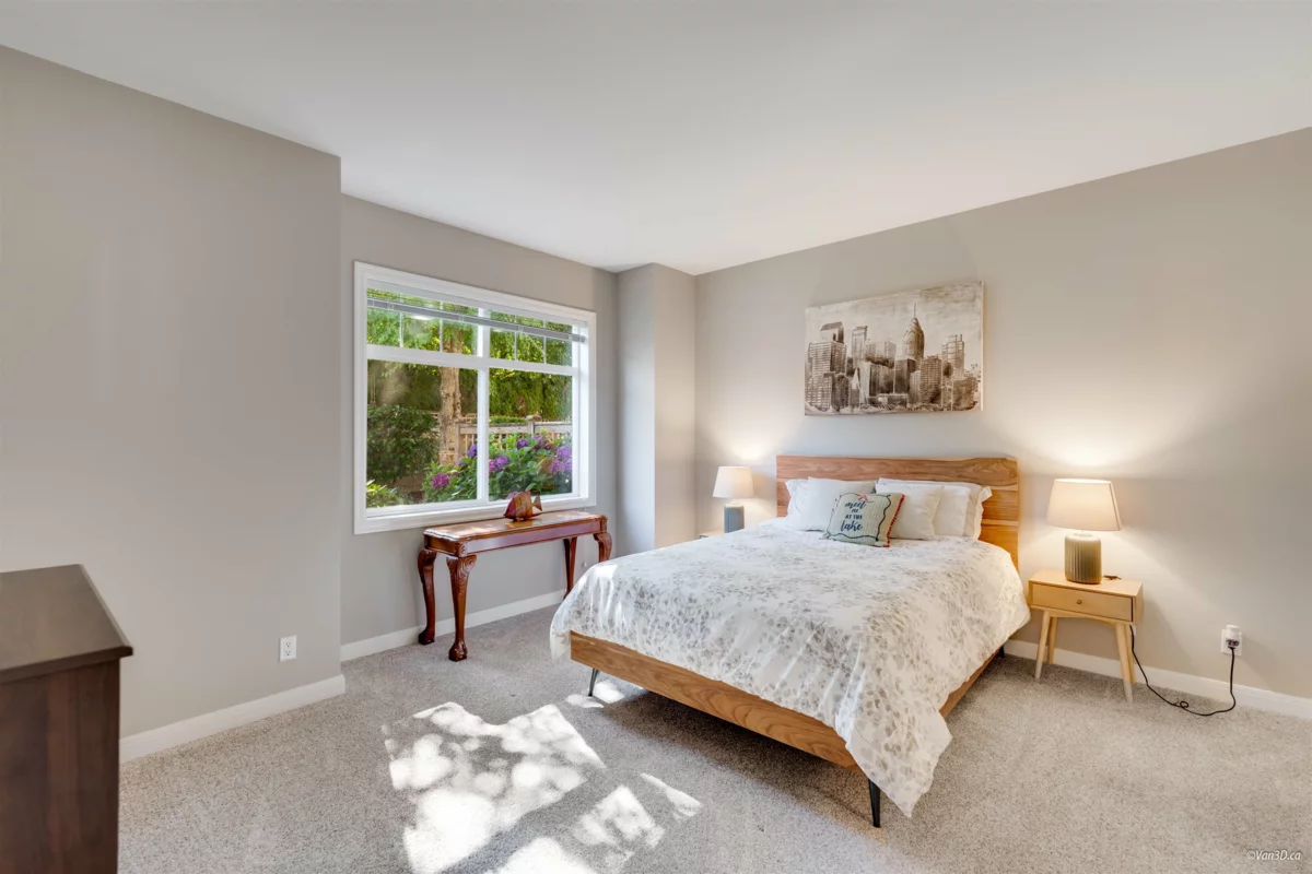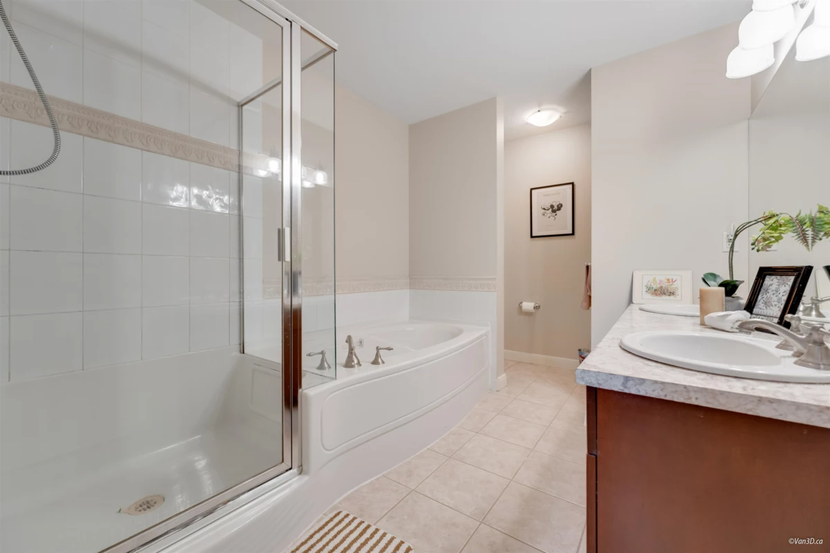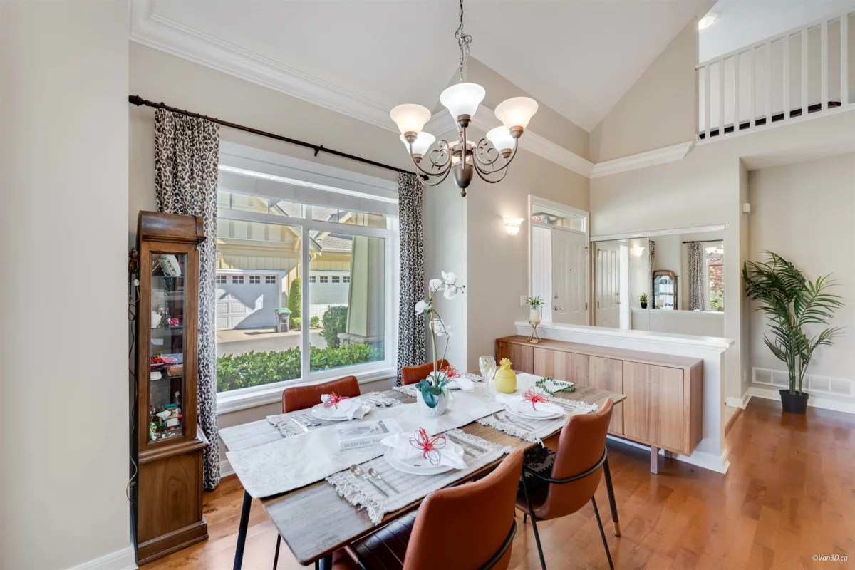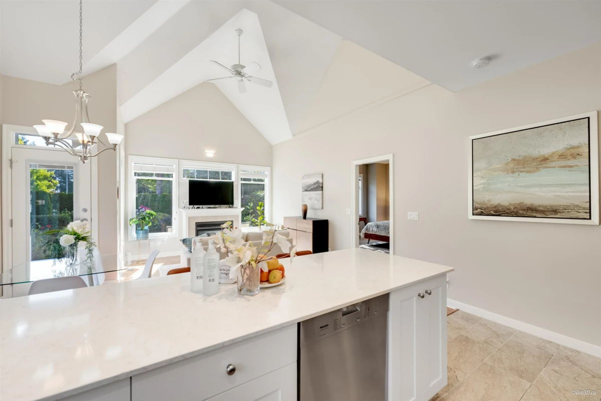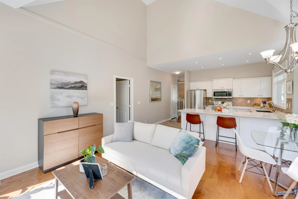 Welcome to Meridian Pointe — a prestigious gated community in South Surrey. This elegant 2,034 sq. ft. craftsman-style townhome features a main-floor primary suite with spa-like ensuite, a second ensuite bedroom, and a versatile loft/den easily converted to a third bedroom. Soaring 22' ceilings, skylights, and two gas fireplaces highlight the bright, open layout. Recent updates include a modern kitchen, hardwood floors, new carpets, and more. Enjoy a private backyard with lush gardens and an extended patio. Double garage, ample storage, and prime location near parks, shops, beaches, and top schools complete the package.