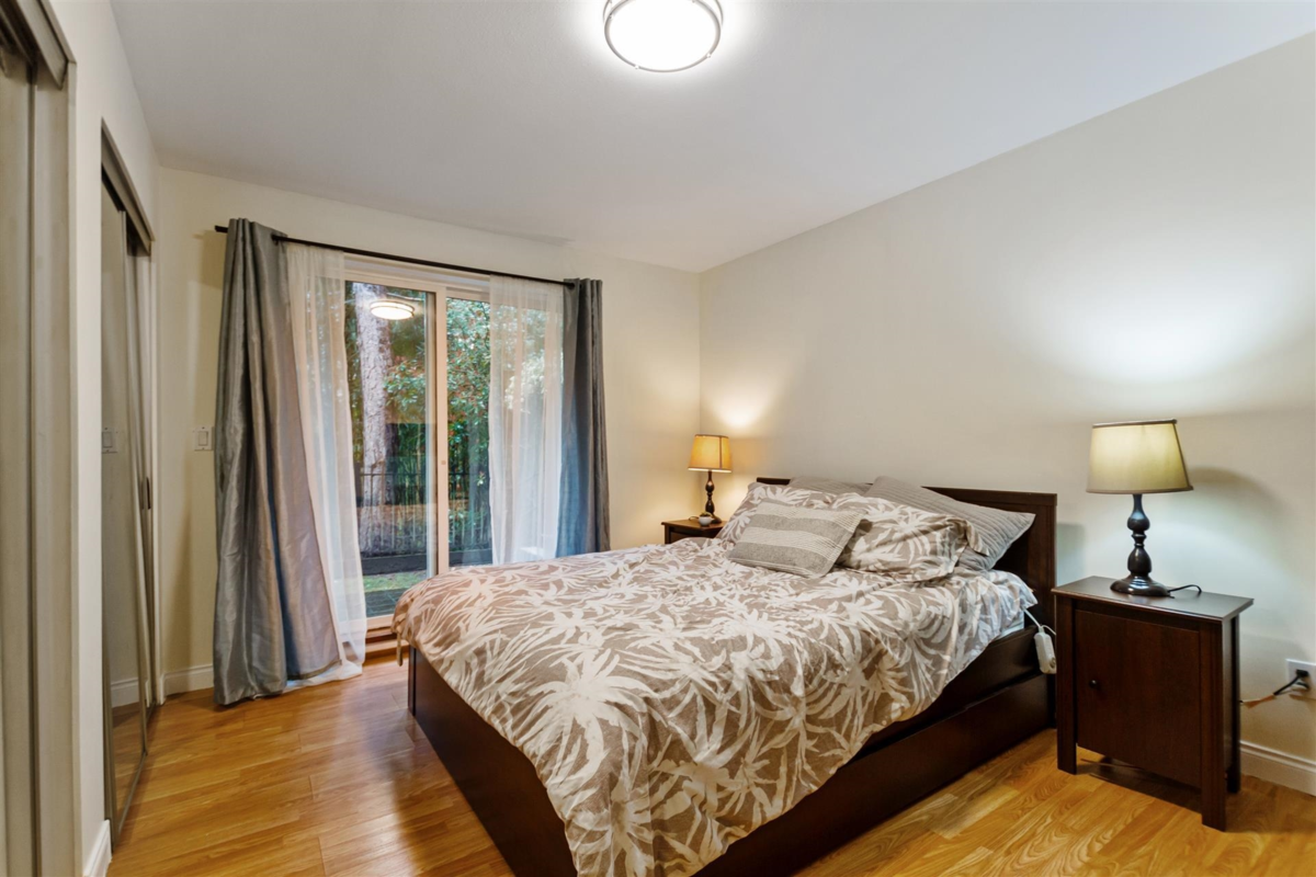 Welcome to Le Courcelles. This beautiful 2-bed/2-bath, ground-floor, rancher-style townhome has 1060 square feet. One of the largest units in the complex. The unit includes in-suite laundry, 2 parking stalls, and 1 storage. A unique unit with a huge patio! Very convenient location to schools, shopping, restaurants, parks, bowling & movie theatre. Quick #1 Hwy.access.