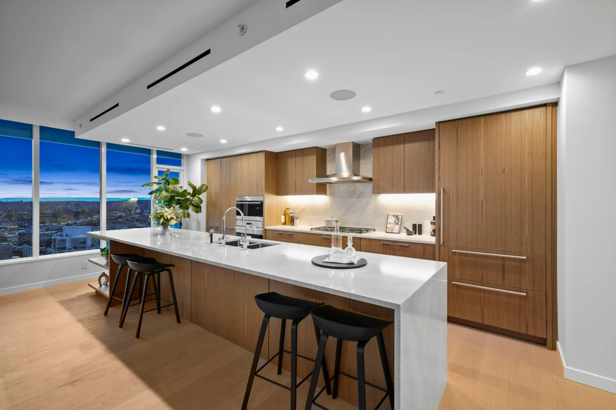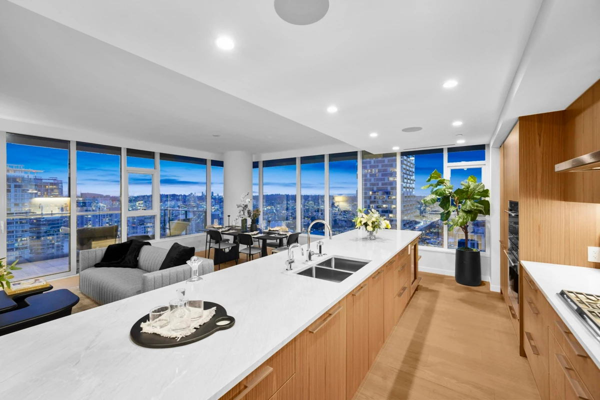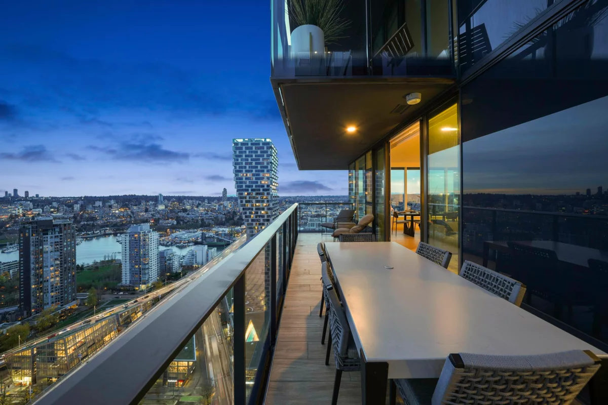 Experience elevated living in this exquisite South East comer residence - 1335 Howe. A massive 272 sq. ft. terrace provides the perfect backdrop for entertaining with panoramic vistas of Granville Island & False Creek. The interior is defined by seamless technology, including AC, integrated smart-home automation, motorized blinds, and premium audio. The gourmet kitchen is a culinary masterpiece, featuring a grand island with a wine fridge and top-tier Sub Zero, Wolf, and Asko appliances. Retreat to the primary bedroom, featuring a walk-in closet and a spa-inspired ensuite clad in floor-to-ceiling marble with heated floors. Enjoy world-class amenities: a year-round outdoor pool/hot tub, gym, concierge, dog run, sauna & steam. Includes a sought-after 2 car private garage & storage locker.