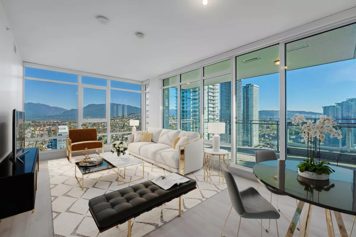 Hold your jaw because it will drop to your feet! Highly sought-after SOLO 3 by Appia BOSA. This 3bed 3bath E1 plan is very rare as there are only 4 of these in the building. Among the 4, only this 35th floor comes with extra expansive balcony (484 sqft) making it a true one of a kind. Immaculately maintained and COMPLETELY FLAWLESS. The layout is amazing with no wasted space. 2 of the 3 rooms come with large closets and ensuites making both rooms masters. High-end SS appliances. Floor to ceiling windows let in lots of natural sunlight keeping the home super bright. Year round comfort with geothermal heating/cooling. Absolutely stunning panoramic view of the city, sea, river, and the mountains. 2 side by side parking stalls and 1 storage locker. Live in Brentwood and elevate your lifestyle!
