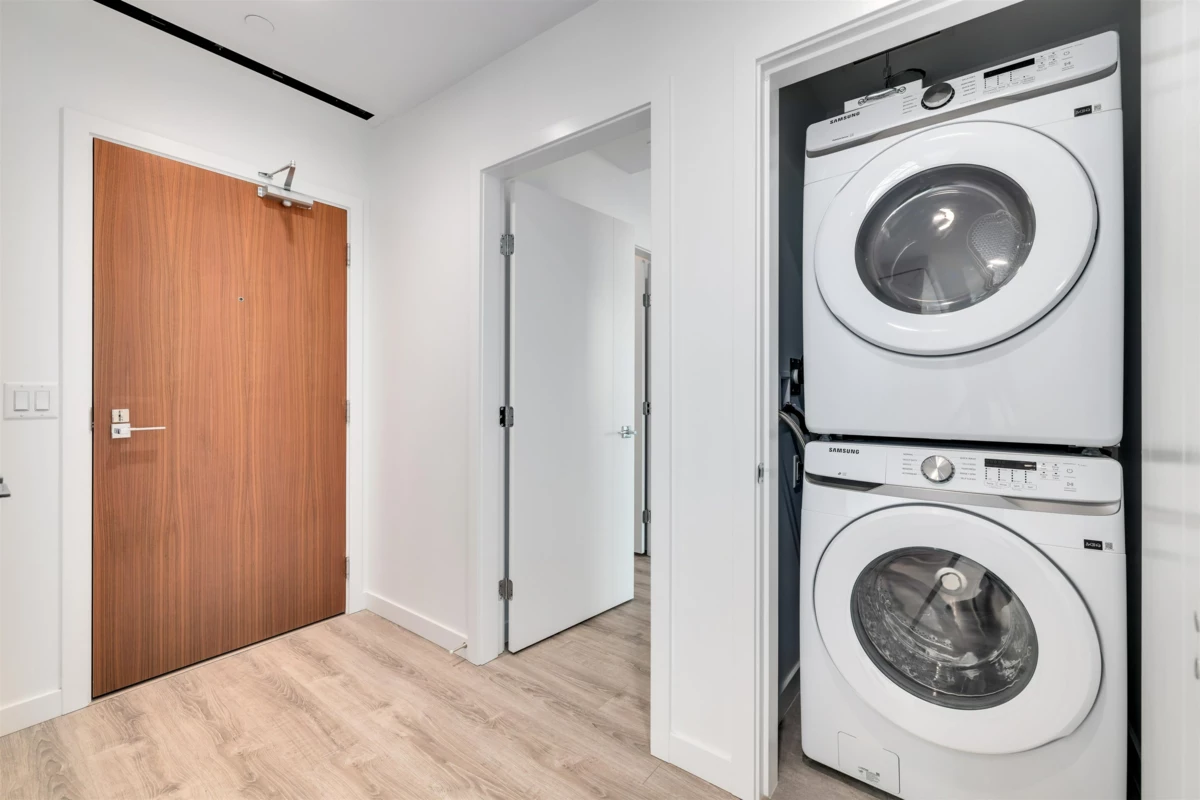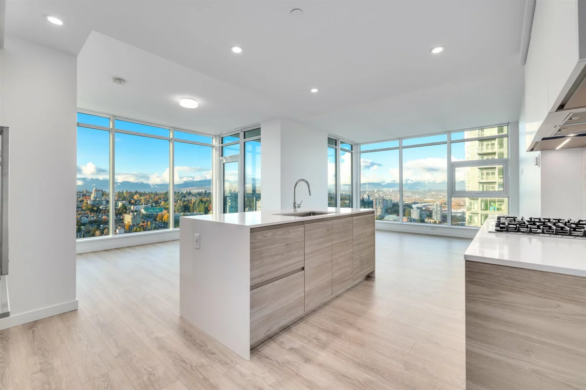 Perched on the 35th floor, this stunning 2-bd, 2-bath luxury residence at Pier West offers breathtaking views and cutting-edge design. Located in an 11+ acre park along New Westminster waterfront, just steps from the vibrant downtown core, this home showcases sleek finishes and premium Bosch appliances, including gas cooking, solid-slab waterfall countertops, and integrated speed ovens. Thoughtful storage solutions, soft-close drawers, and contemporary bthrms with oversized porcelain tiles and elegant vanities add to the luxury. 2 large balconies blend indoor and outdoor living, ideal for enjoying morning coffee or evening refreshments with stunning river and mountain views. Exclusive Owners' Club Inspired by the finest private clubs. Inc: 1 EV PRK, 1 locker.