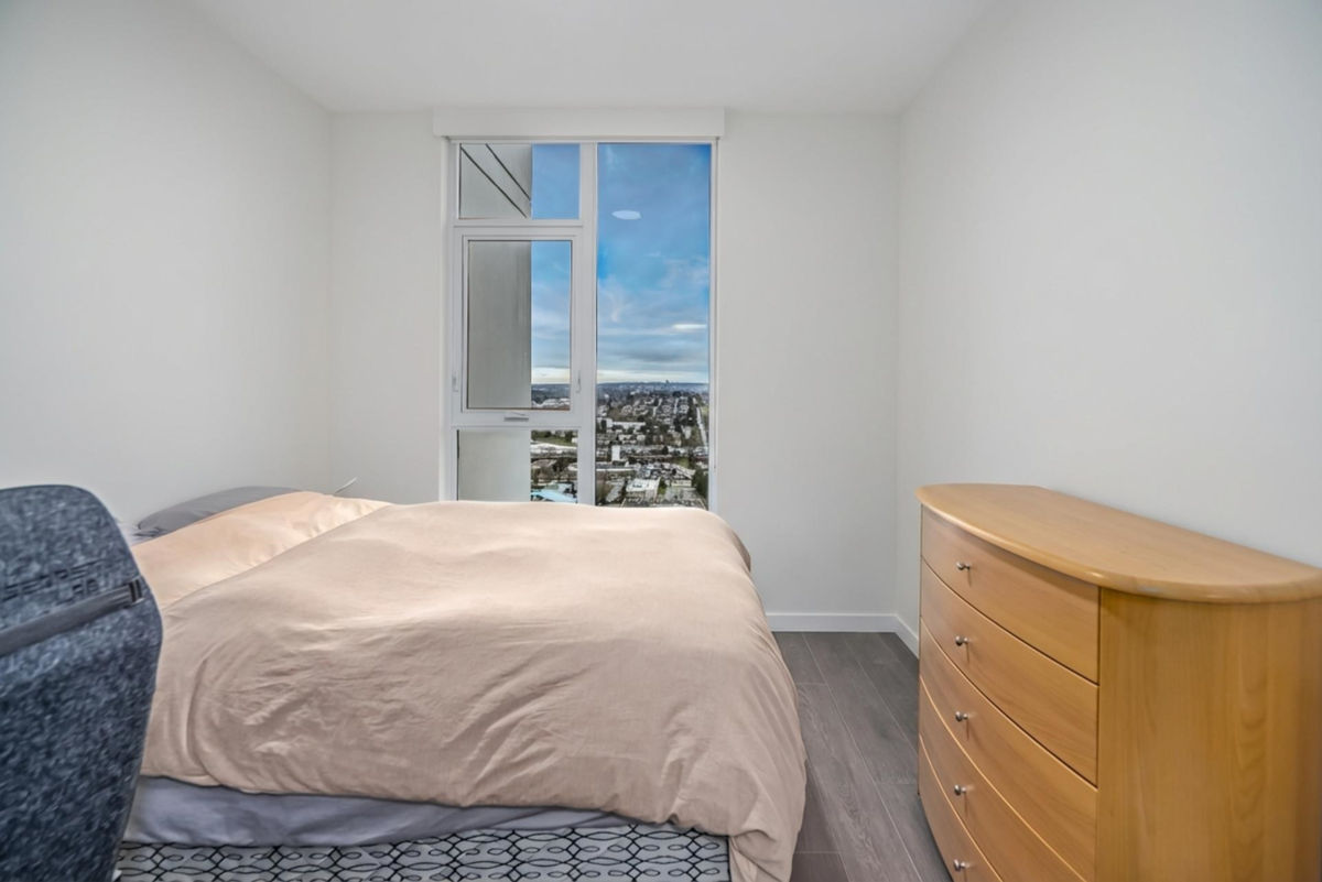 WELCOME TO T1 AT GILMORE PLACE BY ONNI, ideally located in the heart of Brentwood and directly connected to the newly renovated Gilmore SkyTrain Stn, with a future T&T Supermarket coming to the podium below. Perched on the 35th flr, this west-facing 2-bed, 1-bath home offers 707 sq.ft. of efficient living space and stunning city views. The spacious primary bdrm features a w/i closet, while the 2nd bdrm incl A/C, HRV, and a closet (no window). Comfort is ensured year-round with A/C throughout. 1 parking stall, 1 storage locker, 1 bike locker. Enjoy access to over 70k sq.ft. of world-class amenities, bowling lanes, karaoke rms, child playrms, golf simulator, theatre rm, numerous lounges, pool & ping pong tables 2 gyms.