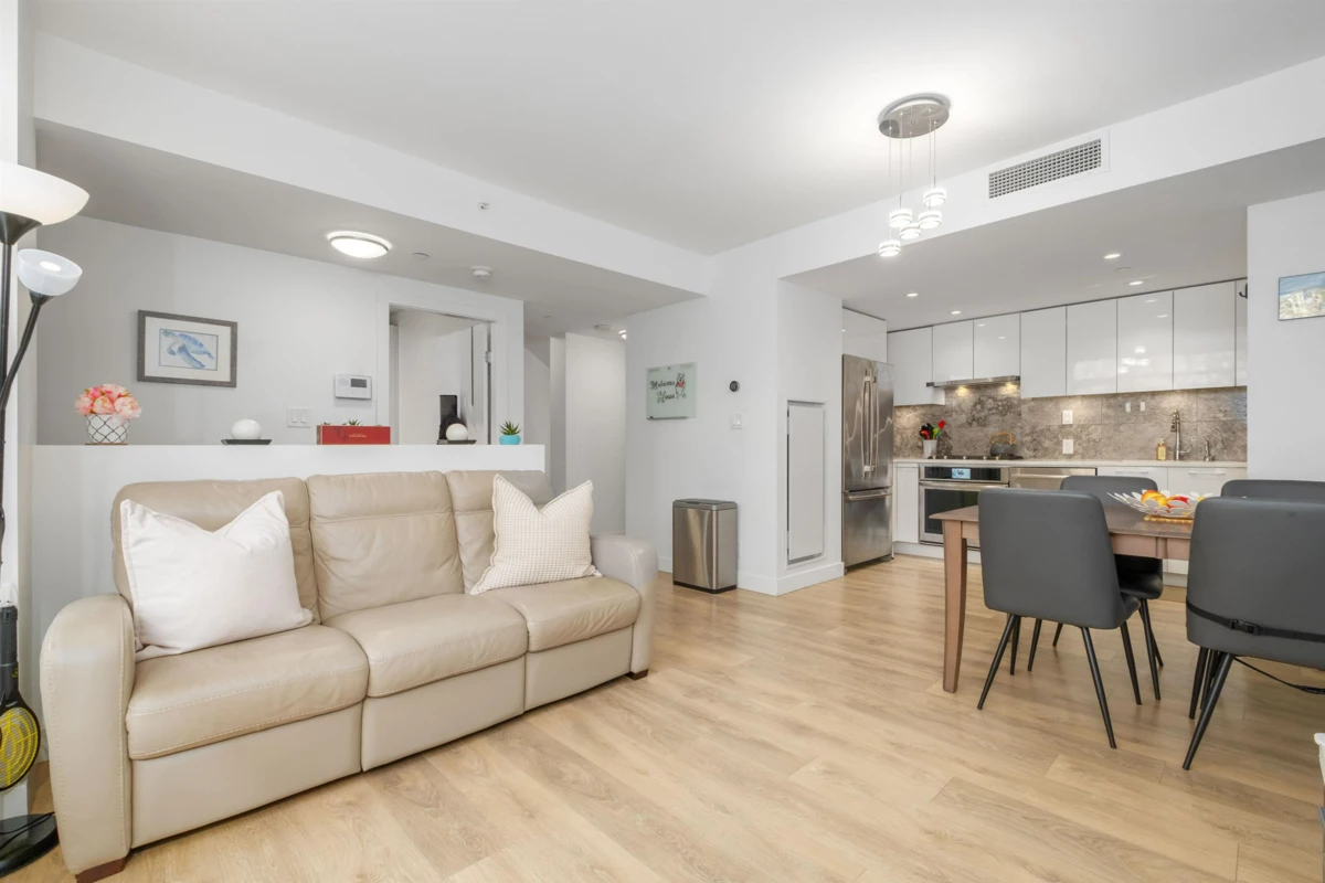 Very unique concrete 3-bedroom, 2.5-bath, 1,581 sq. ft. townhome in the vibrant River District! Enjoy air conditioning and heat pump with geothermal heating, a private 2-car garage with direct home access, and EV parking. The gourmet kitchen boasts Jenn-Air appliances and stone finishes. The spacious primary bedroom features an ensuite with a double vanity, soaker tub, and separate shower. Step onto your expansive rooftop patio with playground access or unwind in the clubhouse with a pool, gym, squash, and basketball courts. Just steps to Save-On-Foods, Starbucks, dining, transit, and a scenic waterfront trail. Experience modern convenience in one of Vancouver’s hottest new neighborhoods.