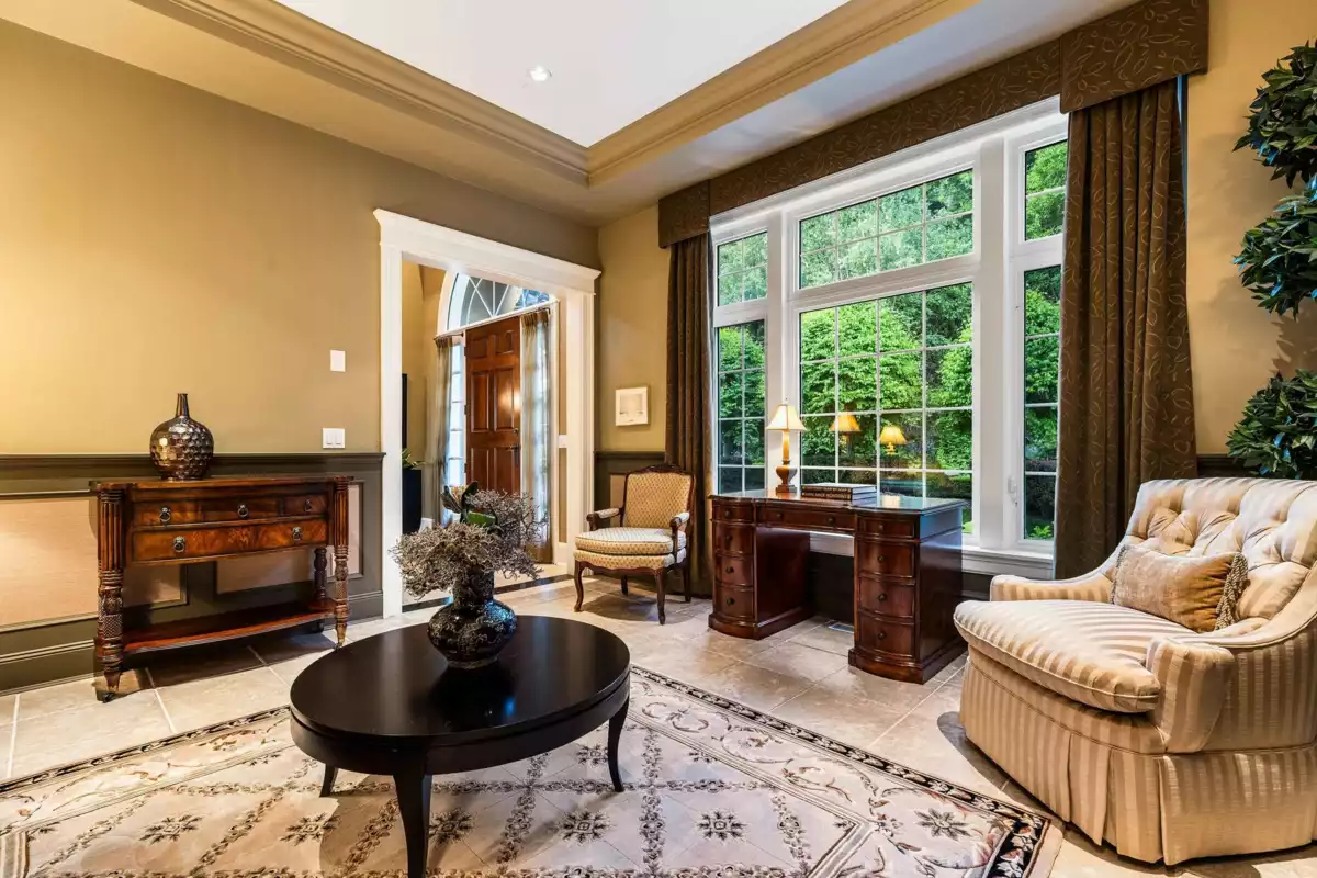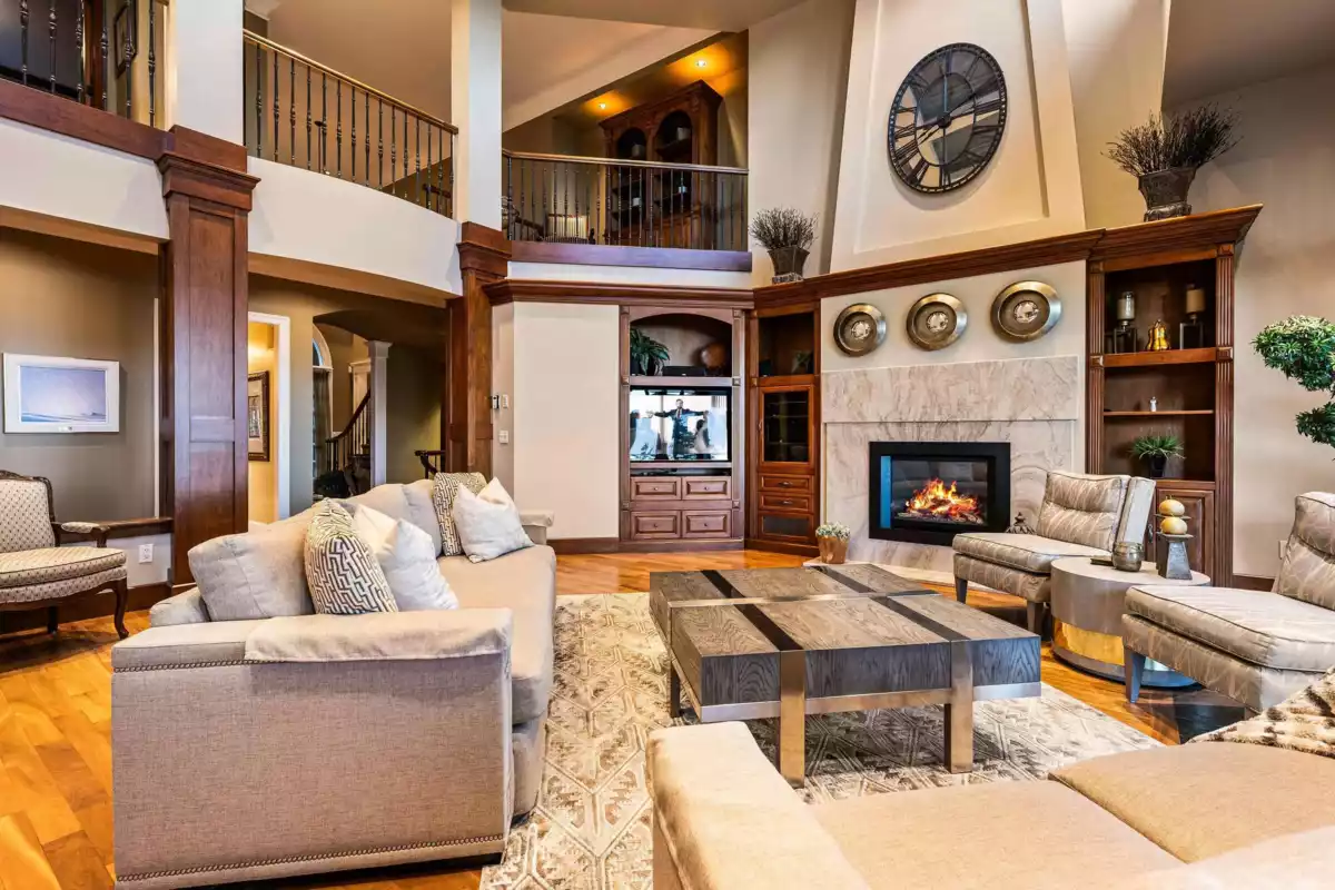 A truly rare offering in one of the best locations on the highly sought-after lower Eagle Mountain. This exquisite custom estate blends timeless elegance with superior craftsmanship—featuring solid hardwood flooring, soaring 18’ ceilings in the main living area, and seamless access to a covered, heated patio overlooking manicured grounds and sweeping southern views. The kitchen, crafted by Old World Kitchens, showcases high-end appliances and granite counters. The grand main-floor primary suite boasts a spa-inspired ensuite and walk-in closet. An extraordinary home for the discerning buyer. Space for a 1 Bed Nanny/In-law suite in basement.