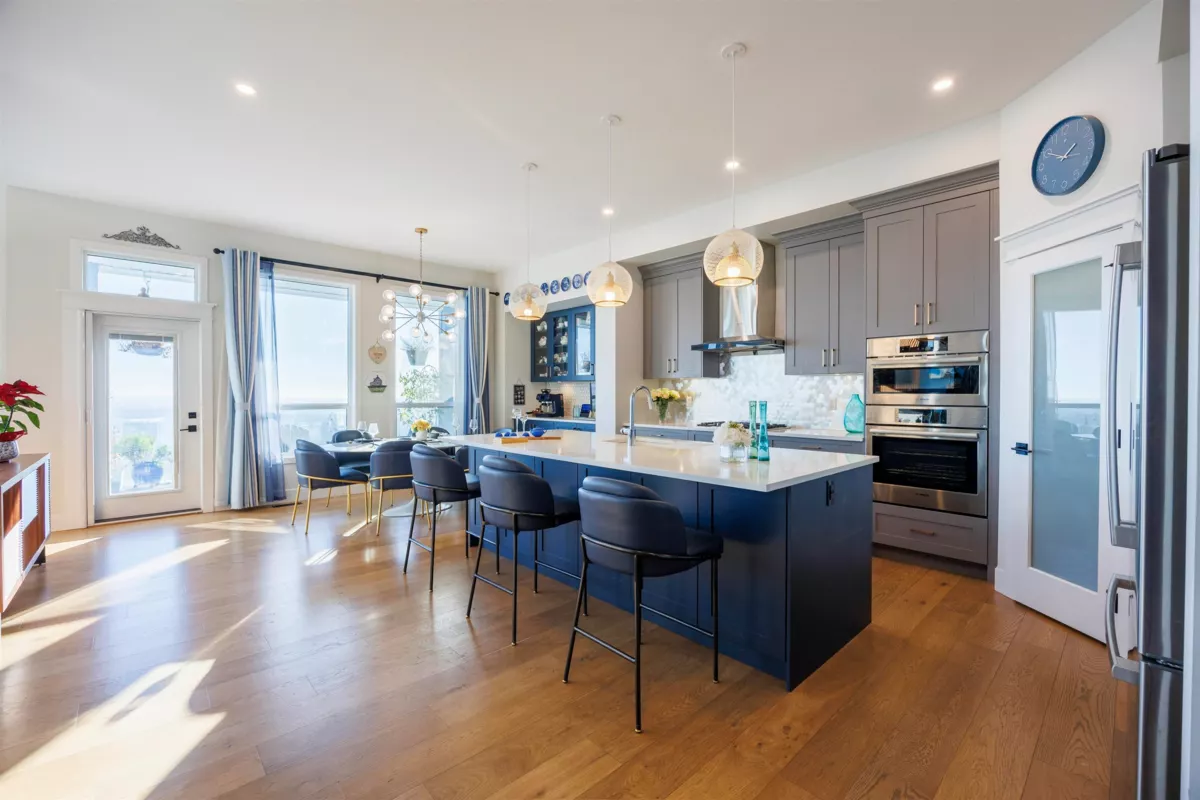 Breathtaking panoramic view of Mt.Baker, River and City. Spectacular view from all 3 levels. Executive corner house with lots of updates(around &200k) in Burke Mountain's best location! Modern open layout design with 18' high ceiling in great room. Luxury living space with enormous windows. Main floor offers a bdrm and full bath. Spacious kitchen with lots of cabinets and upgraded huge island. Bright master with a spacious balcony & ensuite w/stand-alone tub, seamless glass shower. Radiant heat floor in 2 bath. 10' Walkout basement features 2 bdrm, kitchen and a media room with seperate entrance. South facing backyard, huge maintenance-free composite deck with frameless glass rail. EV chaging outlet, Rose garden and irrigation system included. OH: Jan 31 Sat 2-4pm