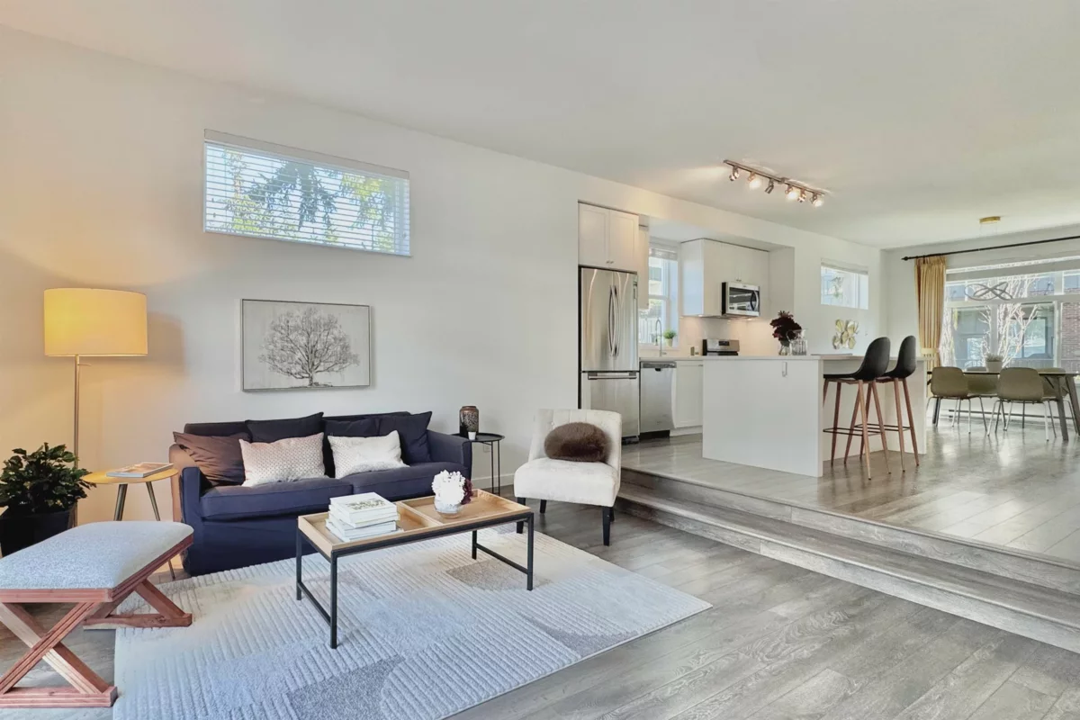 Some say a place to live, i say *HOME* for you! Come see this award winning massive townhouse - Freestyle. With over 1450sqft 4 Beds 2 Bath, sunken living room close to 10' ceiling, Top-end appliances, bright and warm! Walking distance to Both elementary and secondary school, aquatic center, shops and restaurants. Easy access to highways & US border. Assessed at $891,000, it’s offered at $835,000. Don’t miss this rare opportunity! Book your showings NOW!