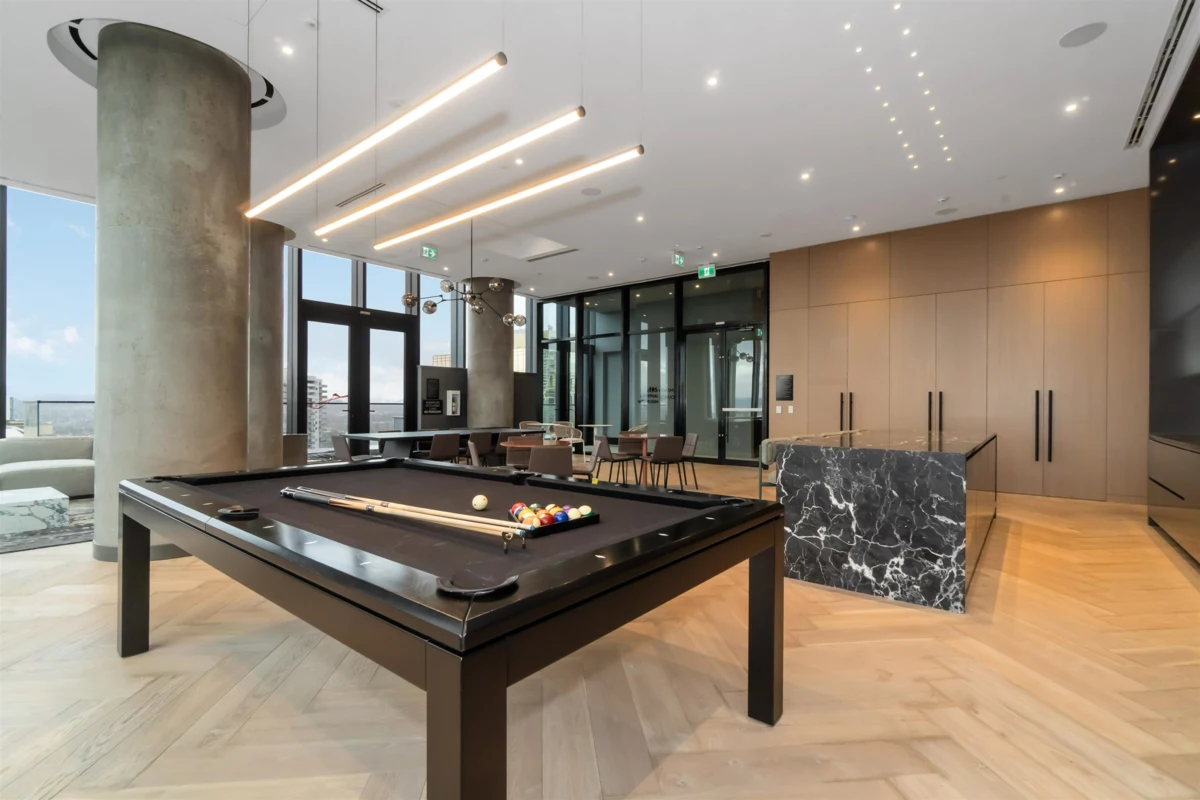 Central Park House, Bosa Properties' newest Metrotown landmark. This 1 Bed + Guest (Guest bedroom fits a single bed and more) northwest-facing unit features a functional layout, striking floor-to-ceiling windows, offering expansive views and abundant natural light. Designed for luxury and comfort, access world-class amenities featuring a double ceiling height heated indoor swimming pool, elegant club lounge, full concierge service, hotel-inspired entrance, and over 2,000sf fitness centre. Conveniently located steps away Central Park, public transit, and shopping, this residence blends modern design with resort-style living in one of Burnaby's most desired locations.