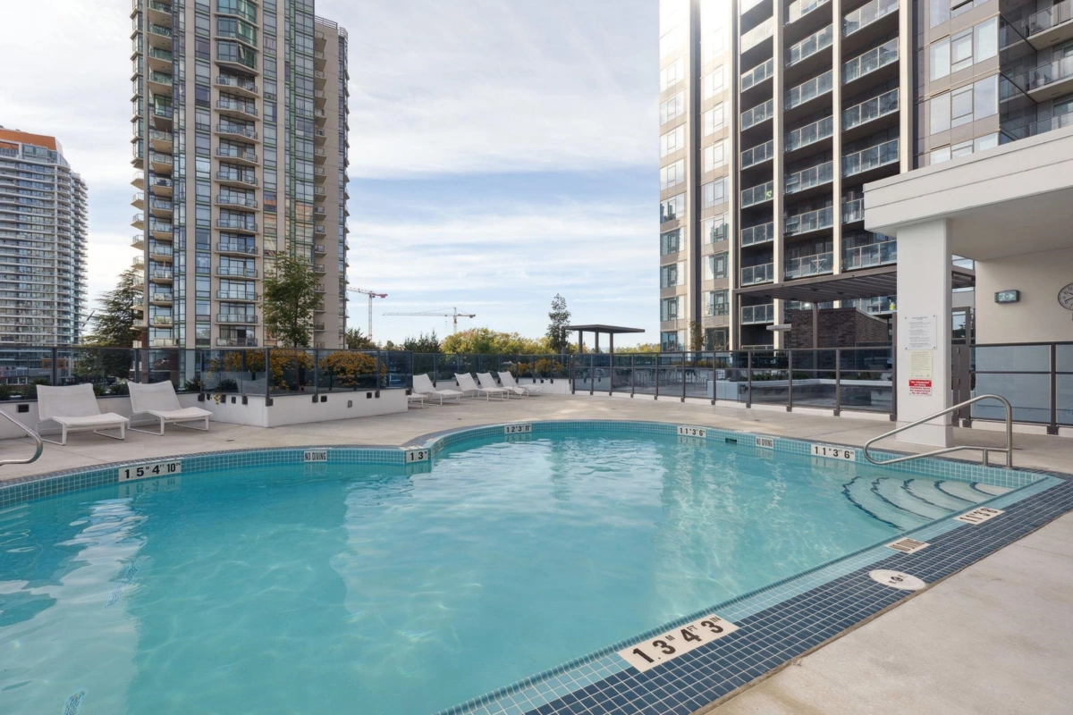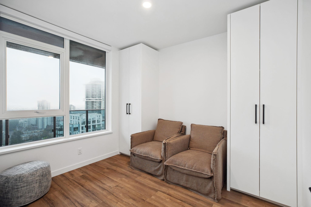 University District South Tower By Bosa - Surrey's premier luxury high-rise! This high level, south facing unit is on the 36th floor so enjoys a fabulous city view. The 2-bedroom, 2-bathroom, 820 sqft with huge 200 sqft balcony offers over 1000 sqft of combined space. The layout offers privacy with two bedrooms separated by living space. Over 23,000 square feet of resort-inspired amenities including fitness centre, yoga room, meeting room, lounge, heated pool with cabanas, poolside dining terrace with fire pit, BBQ and a temperature control parcel delivery area. Walking distance to Transit, shopping, restaurants, Kwantlen University, SFU and Recreation centre. It's everything you need and GST is already PAID.