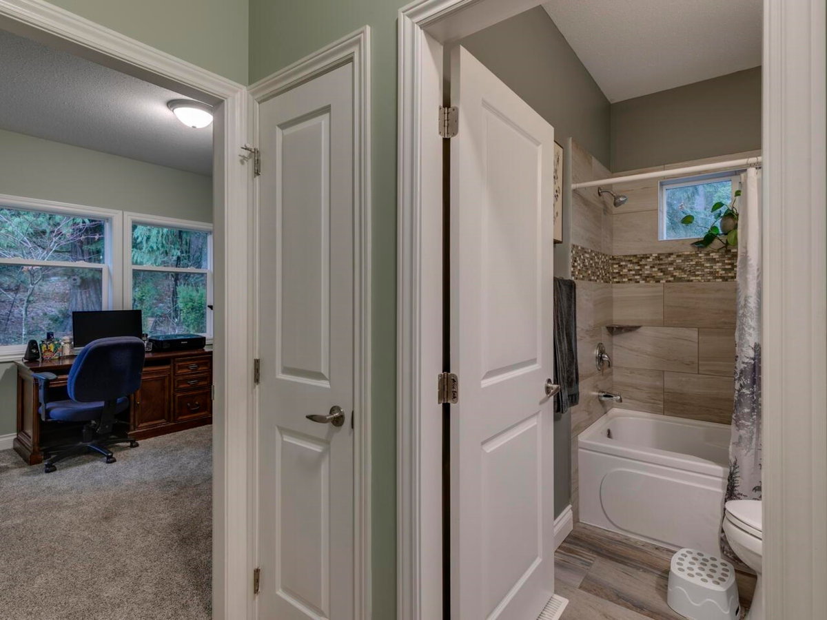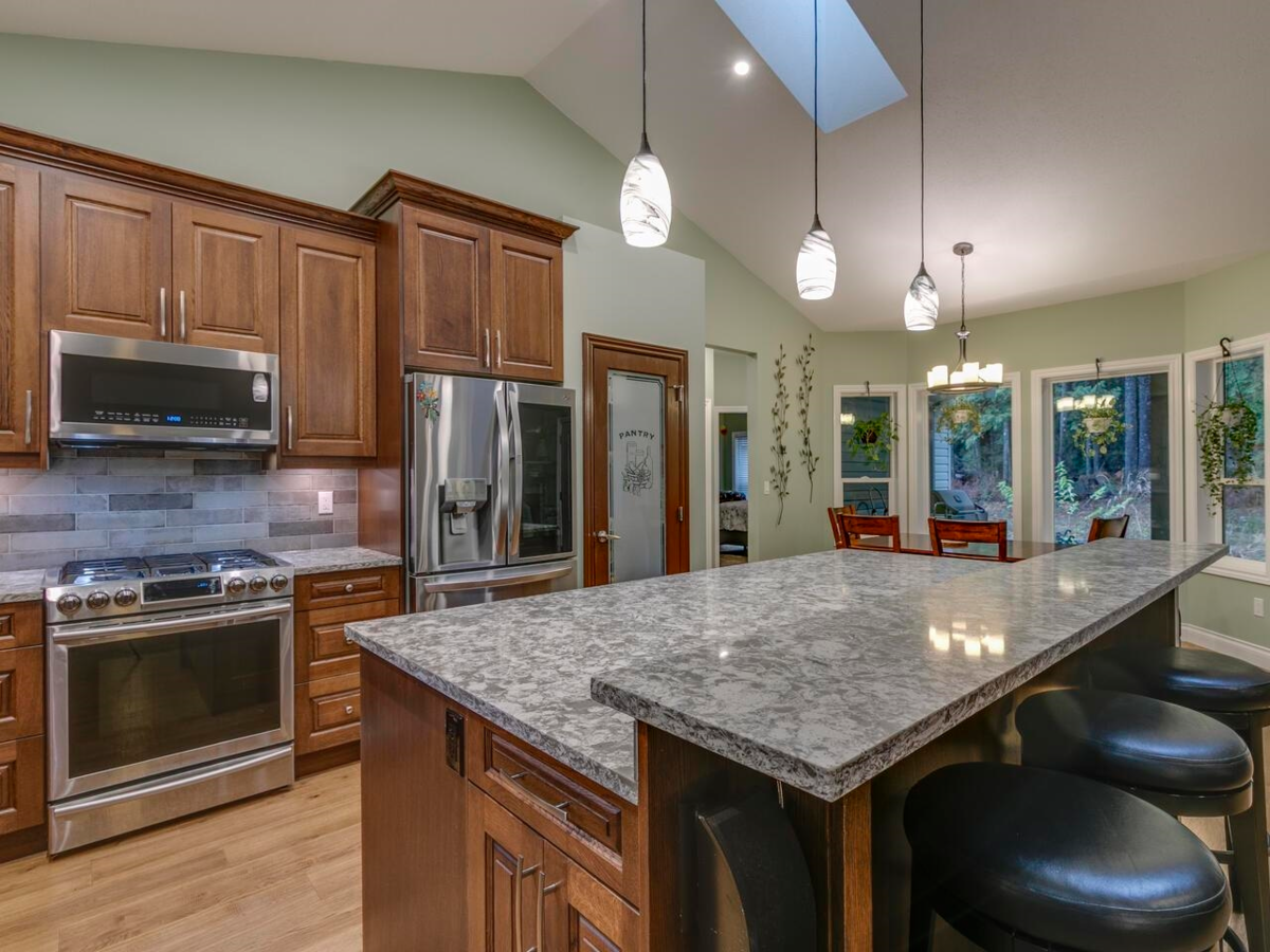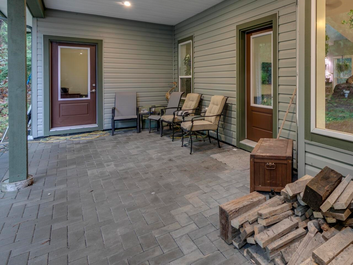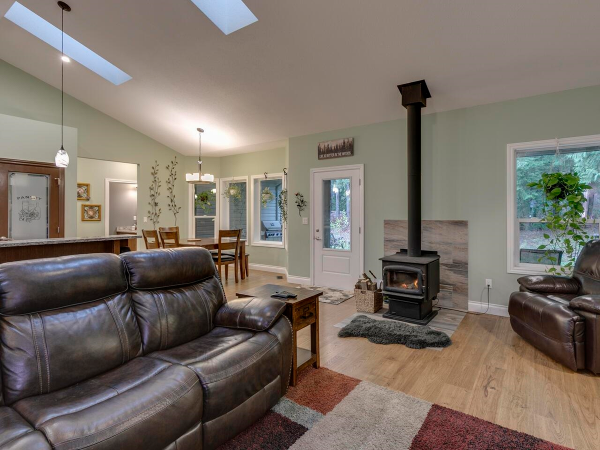 Welcome to this stunning 1600+ sq ft rancher built in 2019, situated on 4.99 private acres surrounded by mature trees and nature. This thoughtfully designed home features 3 bedrooms and 2.5 bathrooms, vaulted ceilings, skylights, and an inviting open-concept layout filled with an abundance of natural light from oversized windows throughout. Cozy up by the wood-burning fireplace or enjoy seamless indoor-outdoor living with a covered back deck, ideal for year-round enjoyment. The spacious double garage plus a separate shop provide excellent storage and workspace options. Located near Cascade Falls, with hiking trails right outside your door, this property offers the perfect blend of privacy, recreation, and modern comfort. A rare opportunity to own a peaceful acreage!