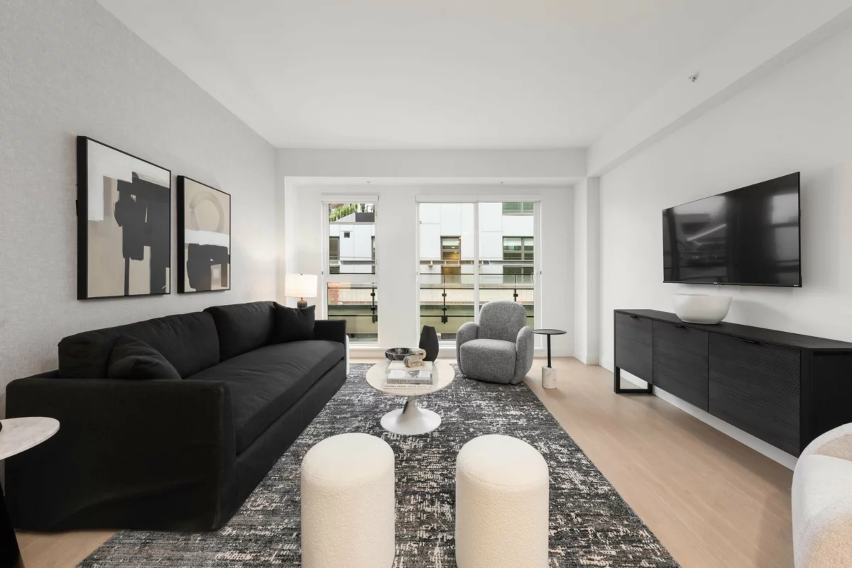 Discover INNOVA — a concrete-built collection of 1, 2, and 3-bedroom homes and live/work townhomes in the heart of Lower Lonsdale. Bright and modern 1 bedroom entry level home offering unbeatable value in a newly completed concrete building. This move-in-ready suite features open-concept living, full-size kitchen high ceilings, and downtown amenities right on site. Future retail homes to both Lee’s Donuts and Delany’s Coffee, INNOVA brings true convenience home. Enjoy the peace of concrete construction, modern interiors, and everyday essentials right at your doorstep. Choose from contemporary layouts designed for quiet comfort and lasting value in a community built to grow. OPEN every Saturday from 1-4pm; Sales Office located at 102a 422 E 3rd Street North Vancouver.